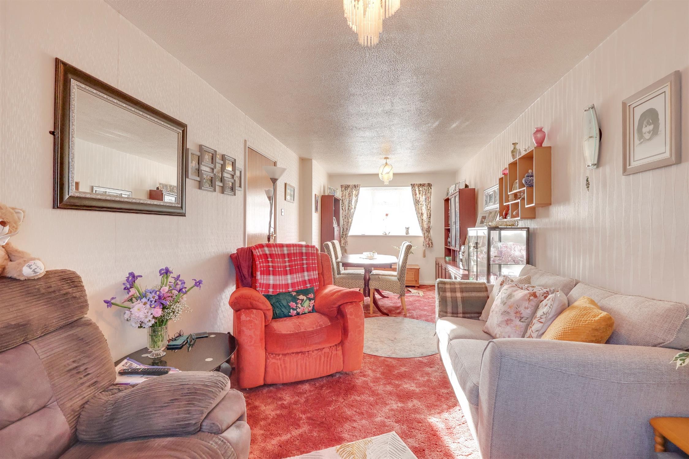 Textured finish to ceiling, double glazed window rear elevation, radiator.