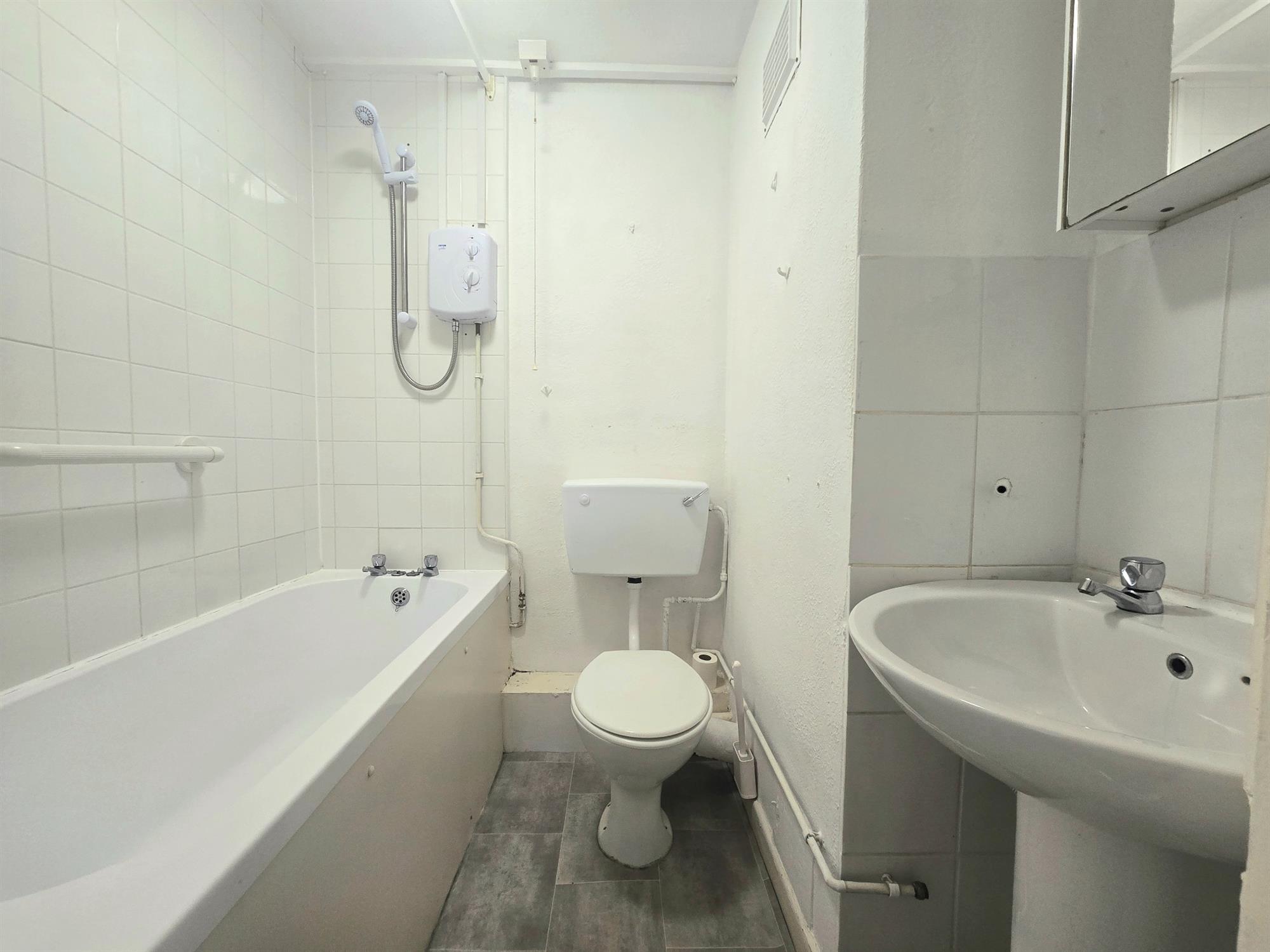 BATHROOM - Three-piece suite; shower over bath, wash hand basin and WC.