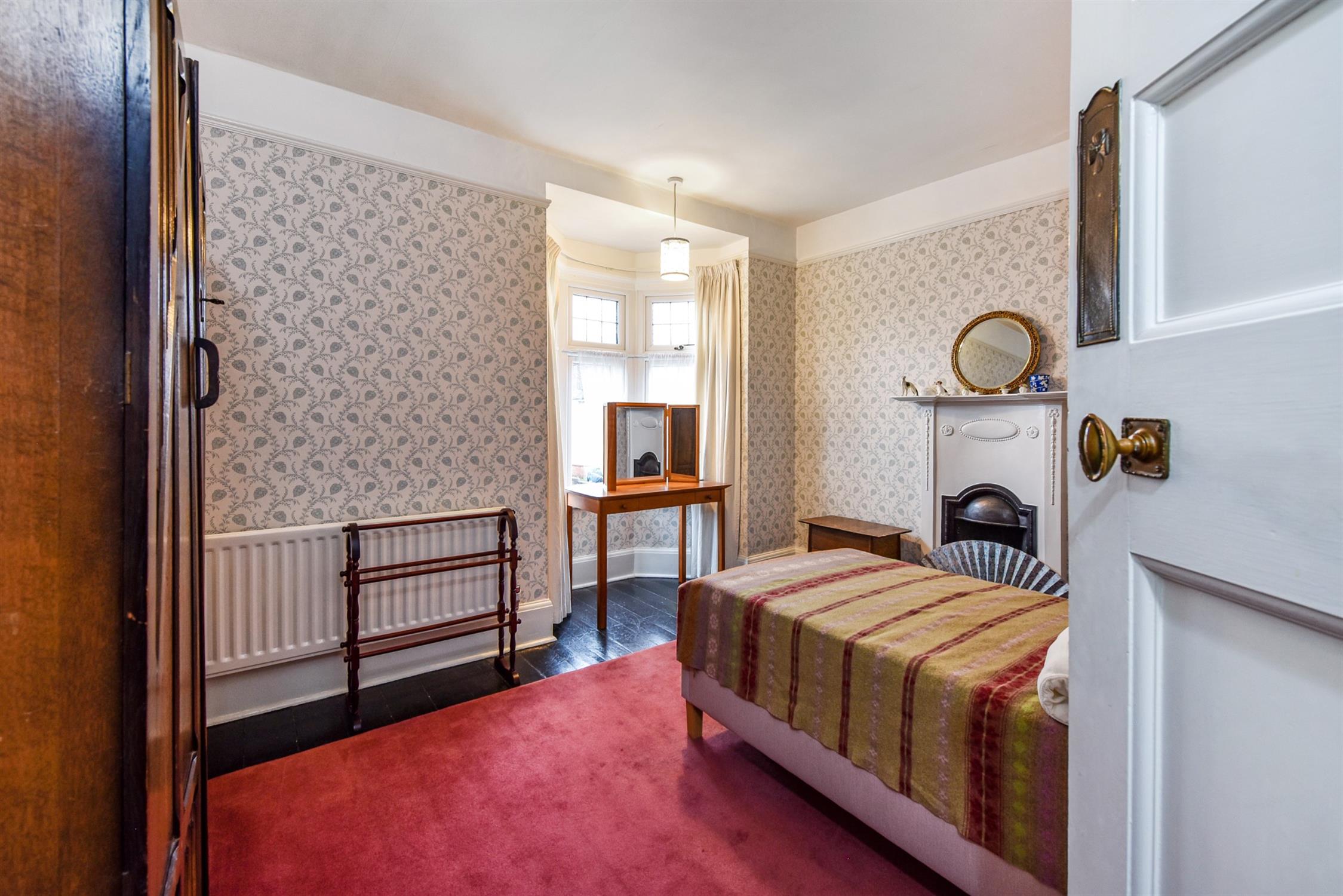 Feature fireplace, radiator, picture rail, original coving, double-glazed bay window to front elevation.