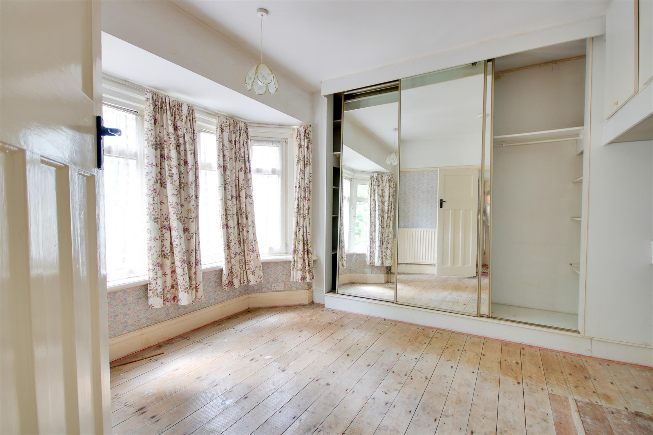 Smooth ceiling with picture rail, UPVC double glazed bay window to front, fitted wardrobes, radiator, door to: