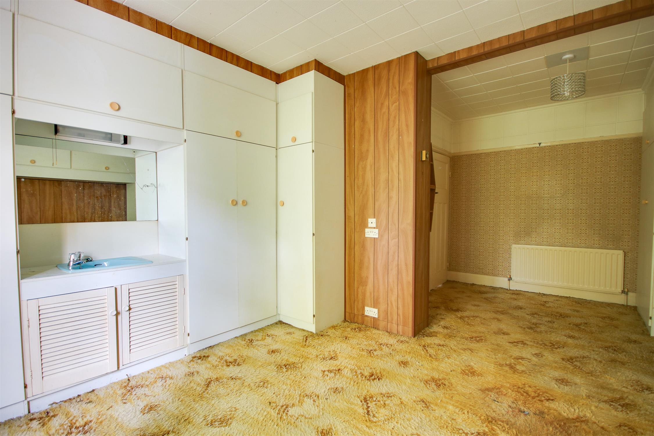 UPVC double glazed window to rear, fitted storage and wash hand basin, two radiators.