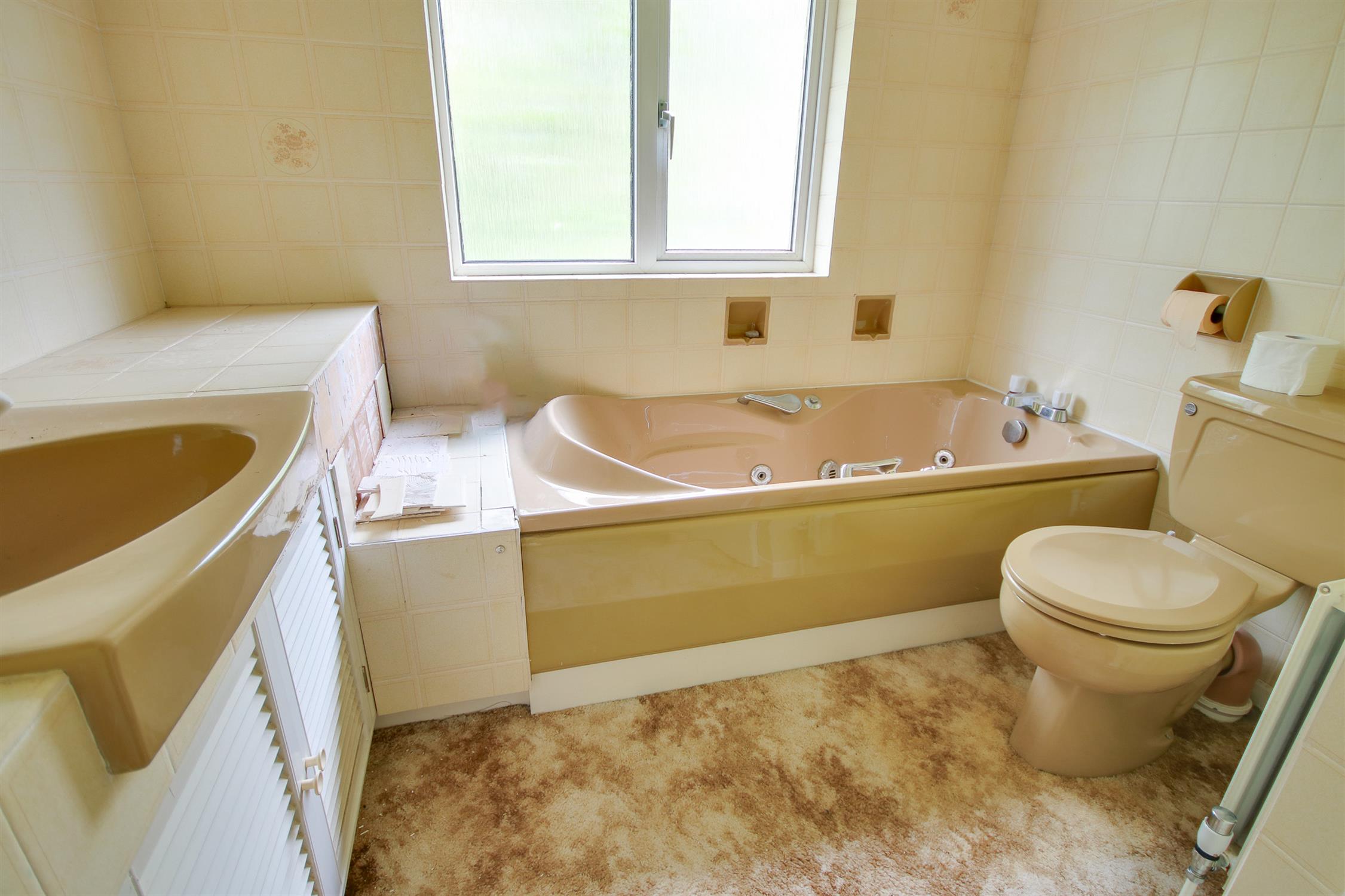 Smooth ceiling, UPVC double glazed obscured window to rear, four piece suite comprising WC, wash hand basin, jacuzzi-style bath and shower cubicle, radiator.
