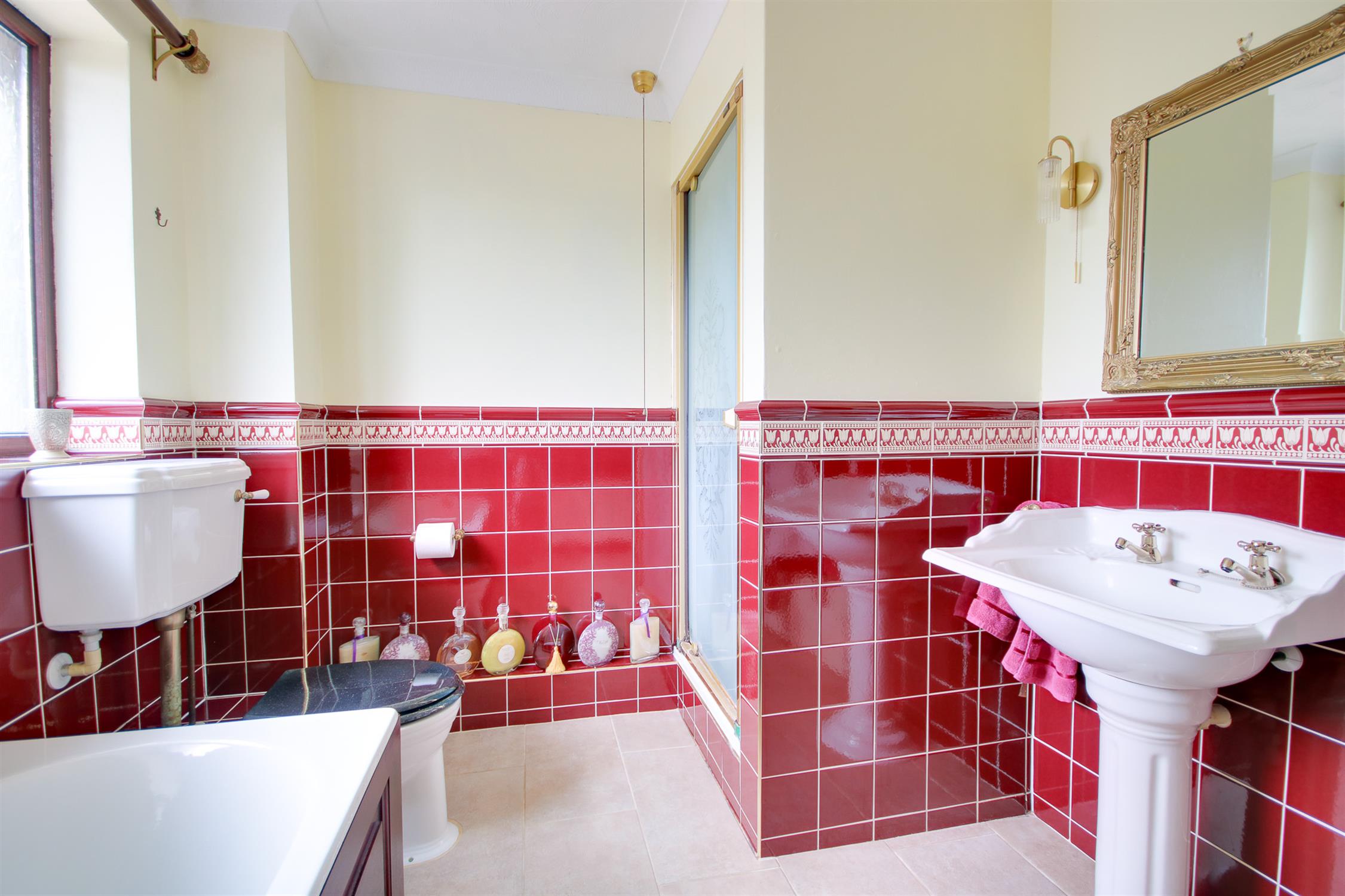Textured and coved ceiling, double glazed obscured window to front, four-piece suite comprising: panel enclosed bath, shower cubicle, wash hand basin, WC, tiling to principal areas, radiator, tiled floor.