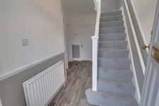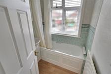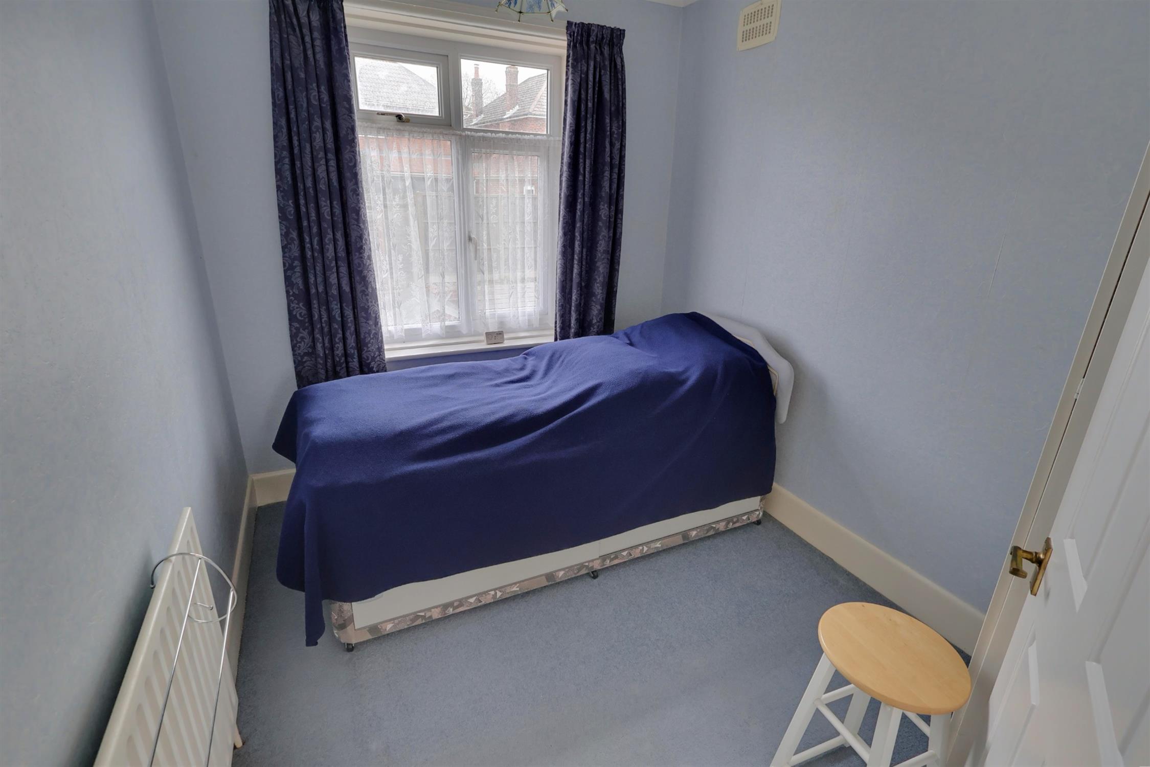 Upstairs, the property boasts three well proportioned bedrooms. The main bedroom is located at the front of the house and comfortably accommodates a large bed and wardrobes. The second bedroom also offers space for a double bed and storage, while the third bedroom is ideal as a single room, home office, or hobby space. Completing the first floor is the family bathroom, featuring a panel enclosed bath, WC, and hand basin.