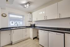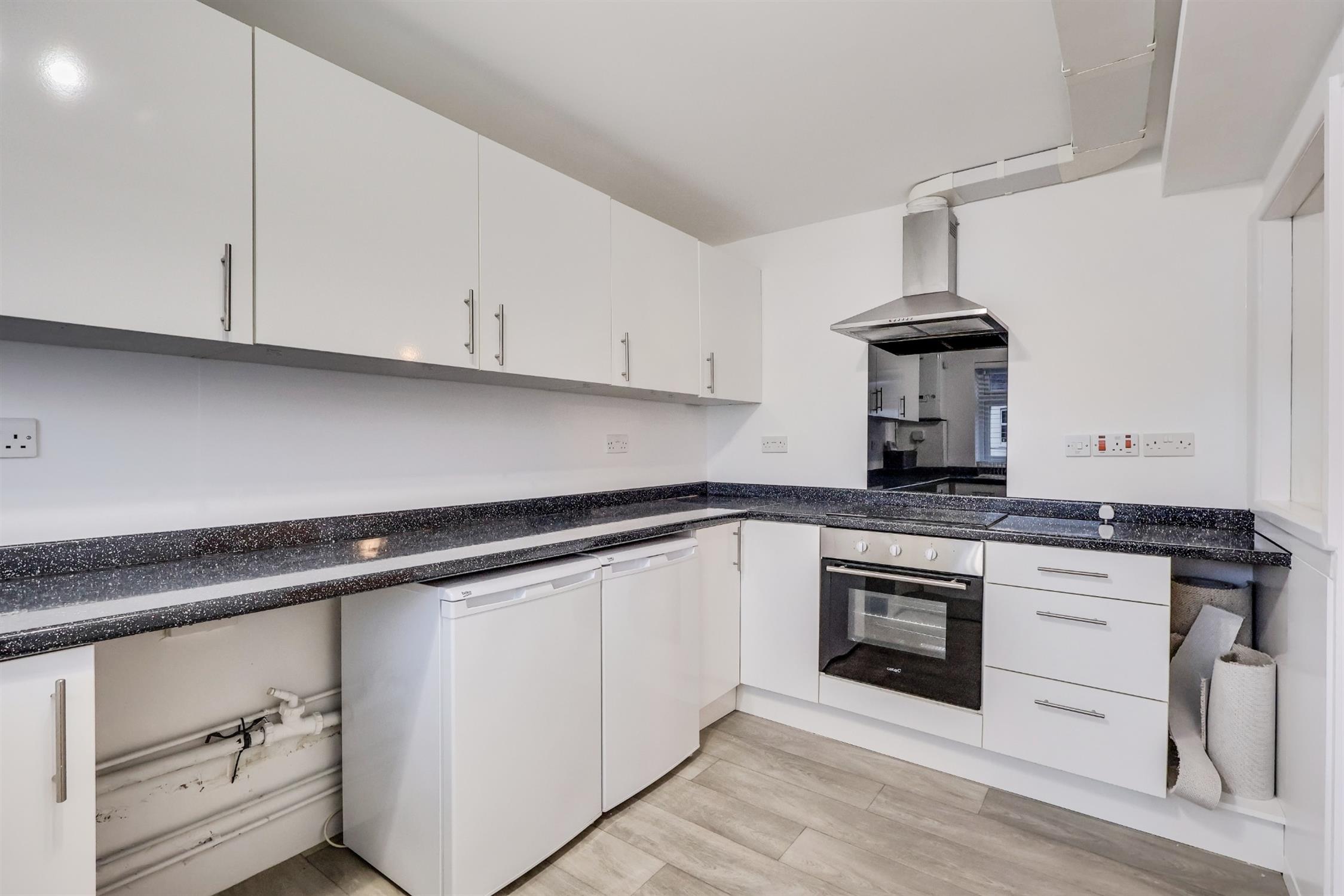 Smooth finish to ceiling, double glazed window to front elevation, modern wall base and drawer units with roll top work surface over, stainless steel sink and drainer inset, integrated oven with electric hob and extractor fan over, space for appliances, wall mounted gas boiler.