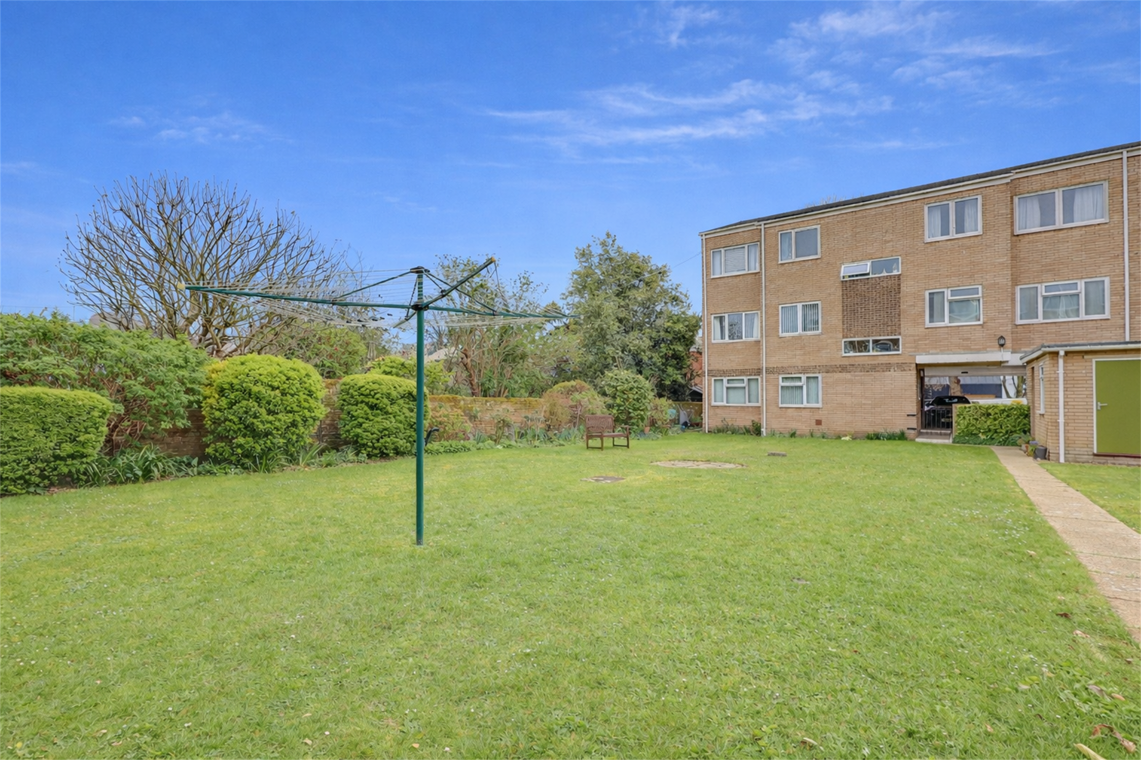 Lawned communal gardens with benches and washing lines, access to lockable shed.