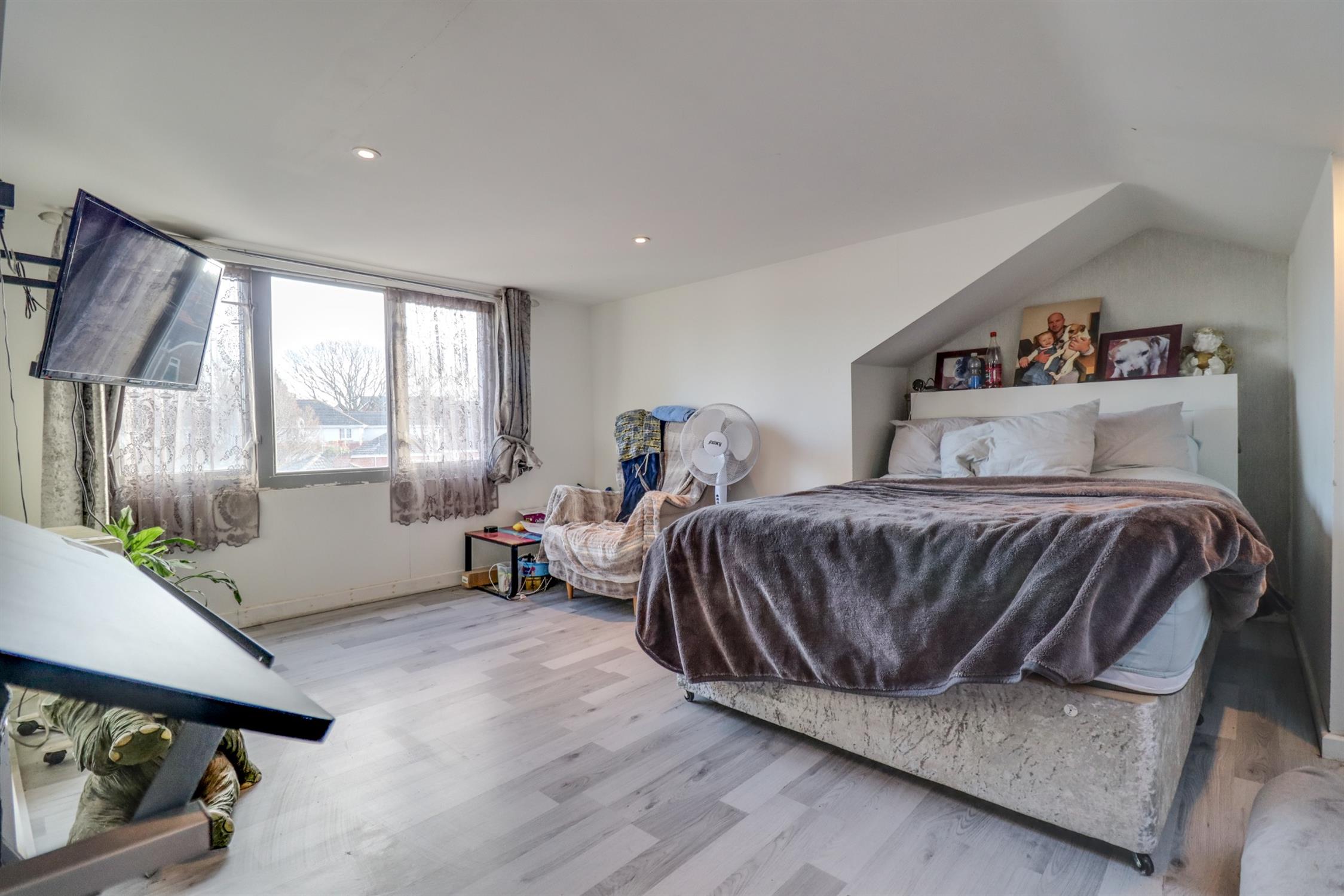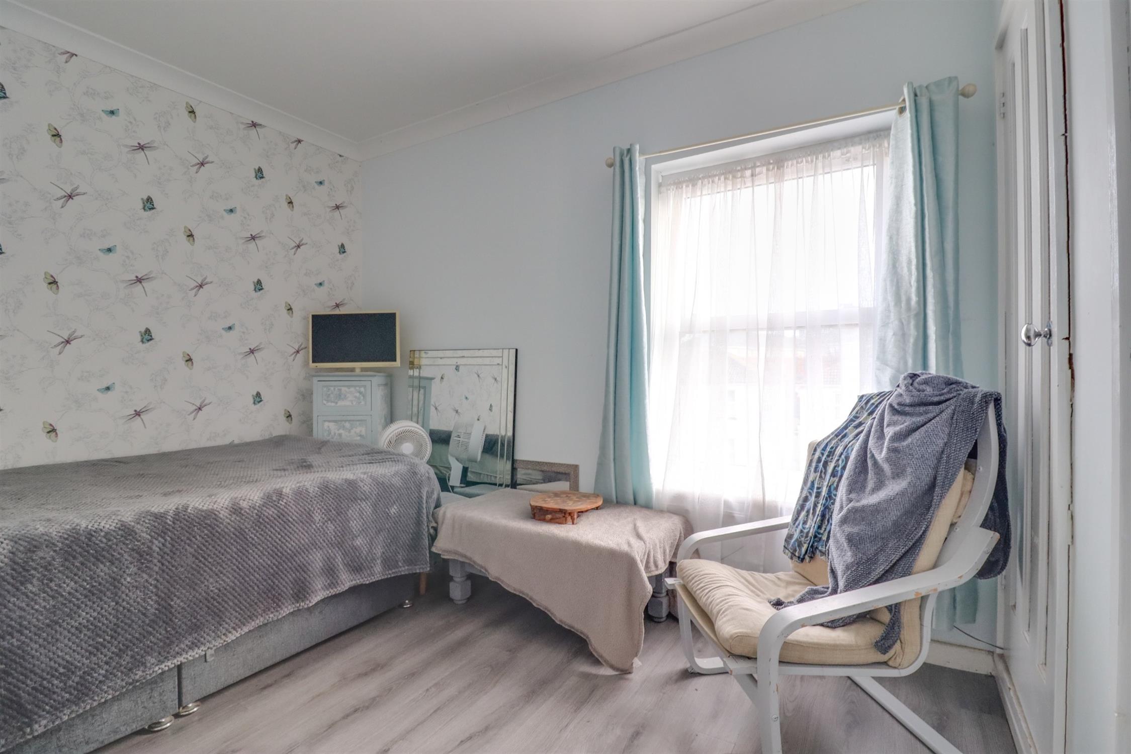 Smooth finish to coved ceiling, double glazed window to rear elevation, built in storage, airing cupboard, radiator, laminate flooring.