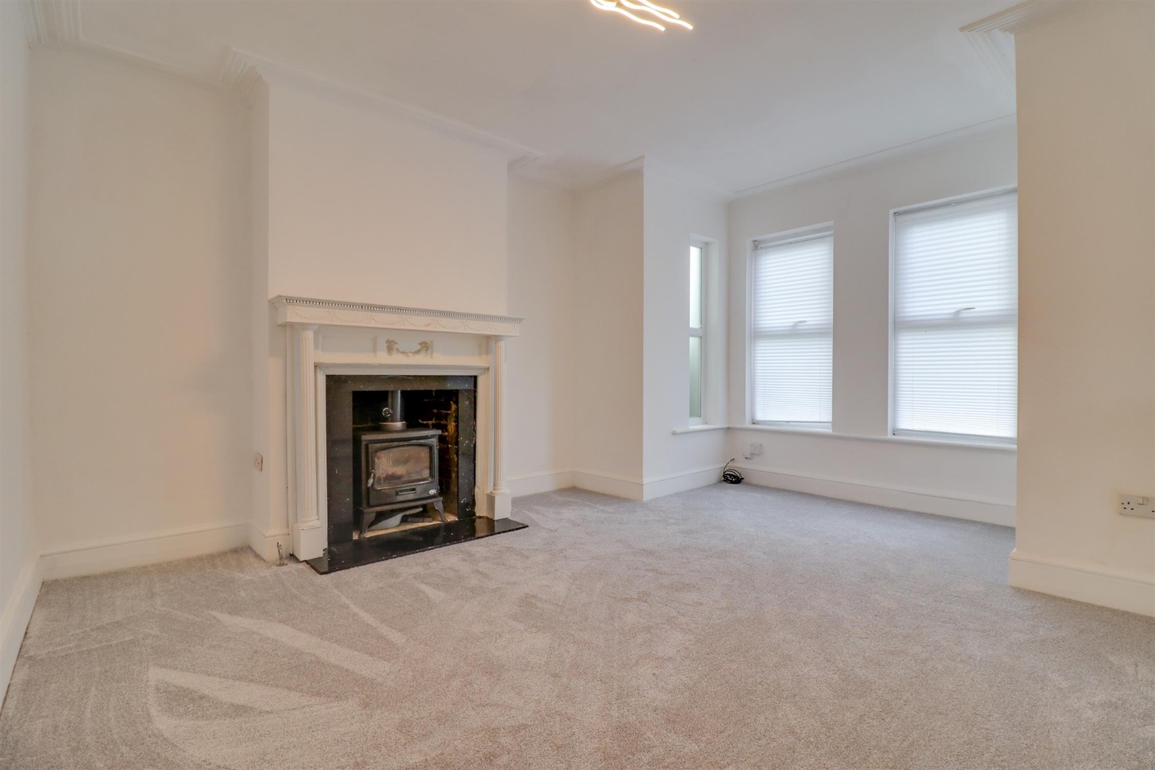 Smooth finish to coved ceiling, double glazed bay window to front elevation, log burner with feature fireplace, radiator.