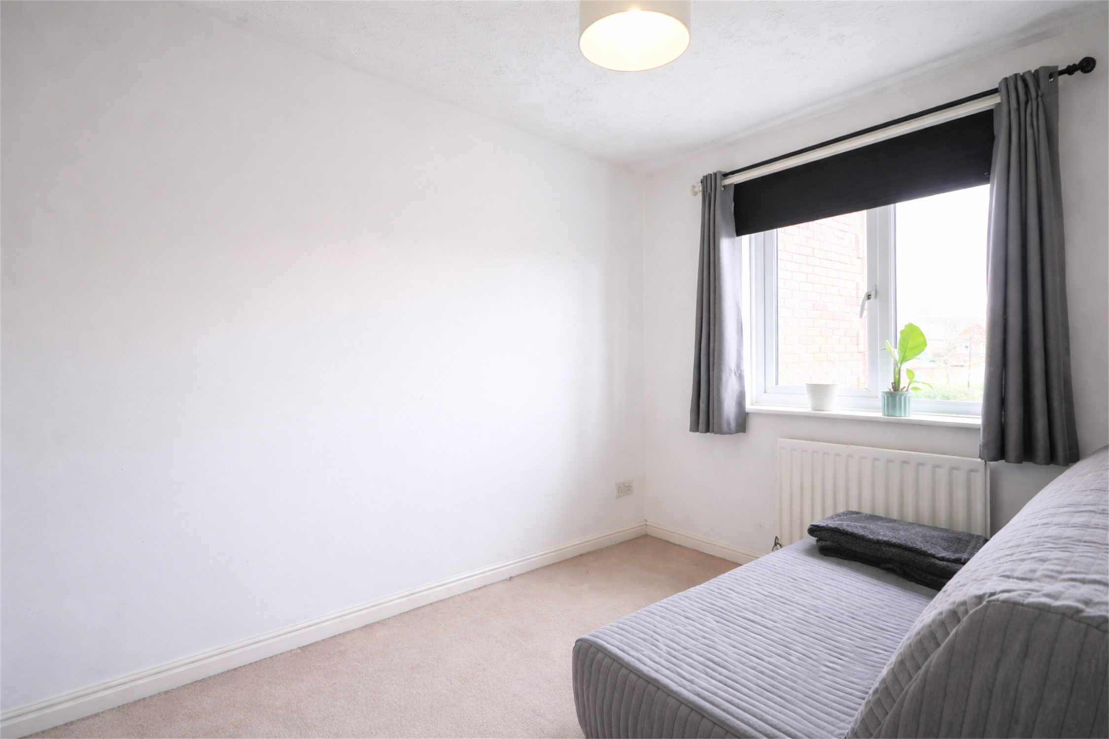 Textured finish to ceiling, double glazed windows to front elevation, storage cupboard, radiator.