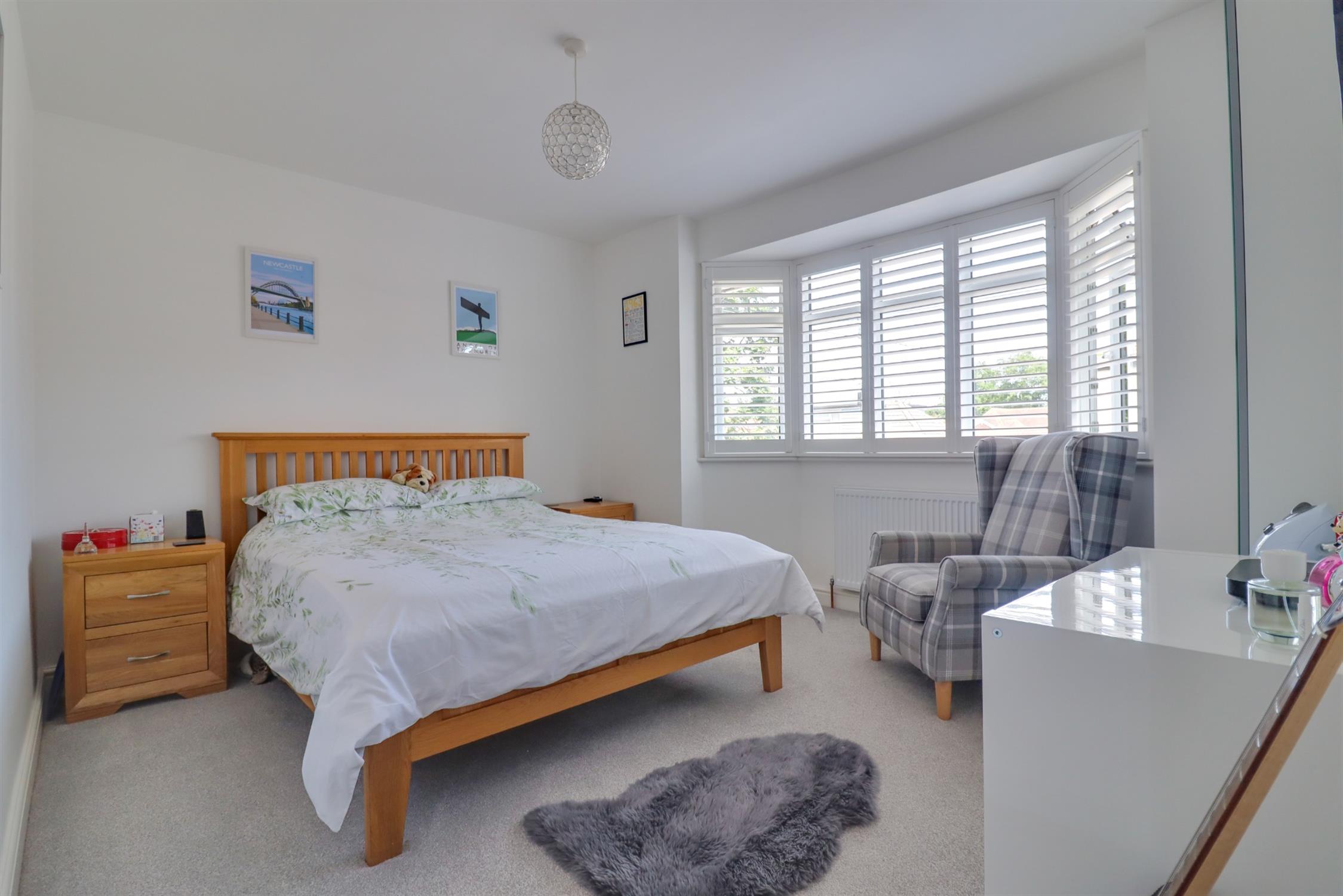 Smooth finish to ceiling, double glazed bay window to front elevation with fitted shutters, radiator.