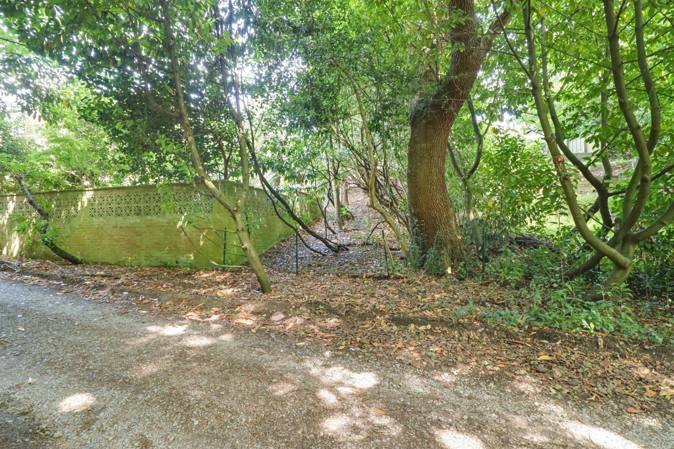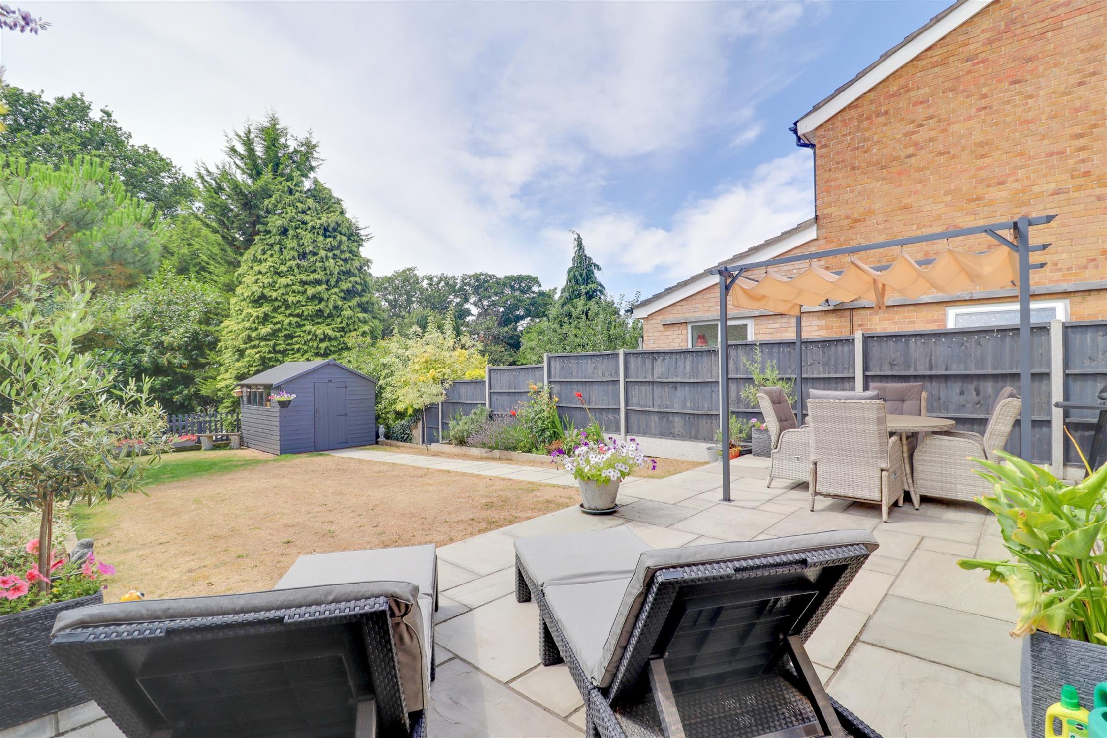Mainly laid to lawn with shrub borders and a generous patio seating area, pathway to shed. Woodland area to rear with planting beds, rear vehicle access from Gashouse Hill. Outside tap & power.
