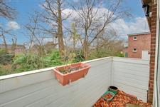 Pathway leading to communal door, stairs rising to all floors.