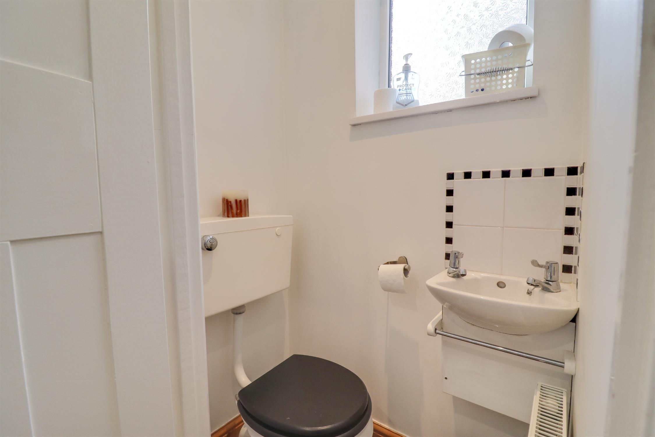 Smooth finish to ceiling with inset spotlights, double glazed window to rear elevation, low level WC, wash hand basin, tiled splashback, radiator.