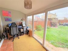 To the rear of the property is a sun room with sliding doors opening onto the rear garden. This versatile space could be used as a home office, playroom, or hobby room, depending on your needs. Adjacent to the sun room is a convenient utility room fitted with a WC and hand basin.