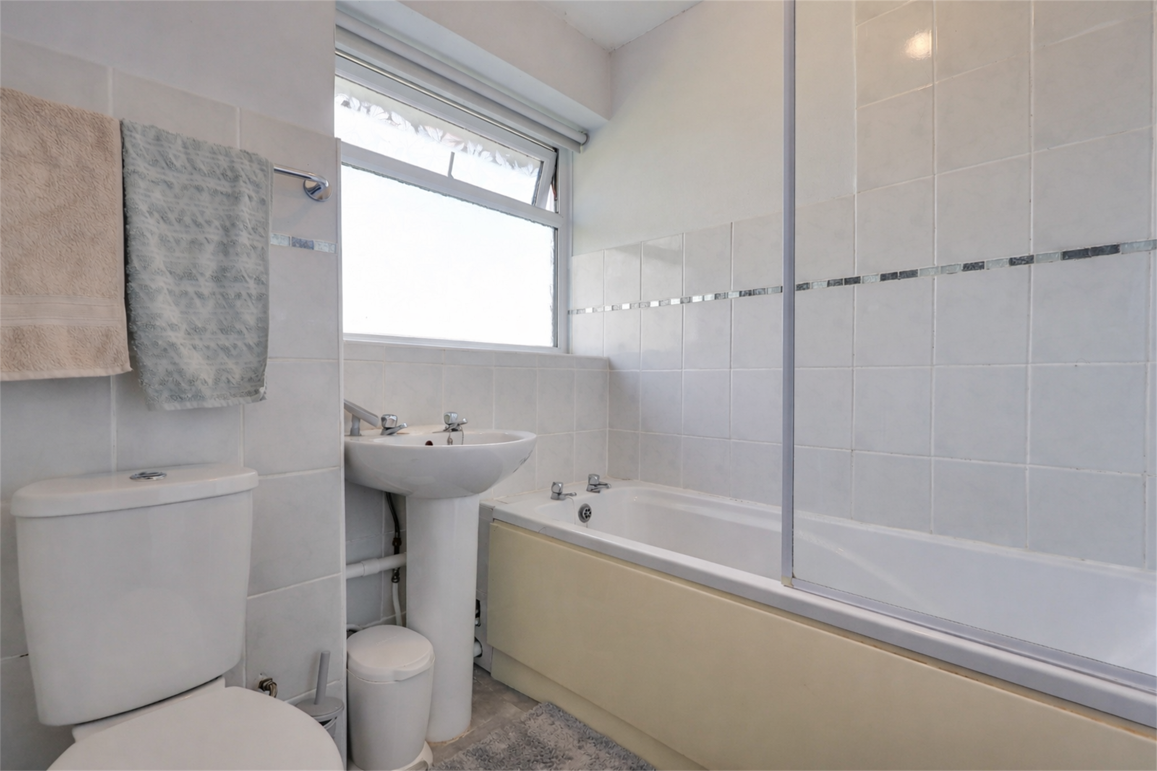 Textured finish to ceiling, double glazed window to rear elevation, panel enclosed bath with electric shower over, wash hand basin, low level WC, tiling to applicable areas.