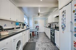 Smooth finish to coved ceiling, double glazed window to side elevation, double glazed French doors to rear elevation, range of matching wall base and drawer units with roll top work surface over, sink and drainer inset, space for fridge/freezer, oven, washing machine, tumble dryer and dishwasher, tiles splashbacks, radiator.