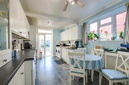 Welcome to Bishops Road. This spacious three double bedroom mid-terrace home captivates with its grand proportions and timeless charm. Upon entering, you are greeted by a welcoming entrance hall with a handy storage cupboard and small porch. The heart of the home is the beautifully crafted kitchen, featuring white shaker units, tiled splashbacks, and an abundance of storage and worktop space. Further in, an inviting lounge showcases a feature fireplace and a box bay window that bathes the room in natural light. A formal dining room with built-in storage and a sunny conservatory complete the ground floor accommodation. Ascending the stairs, a well-appointed landing leads to three generously sized double bedrooms and a neutral bathroom suite, one of the home’s true gems. The master bedroom is particularly impressive, offering excellent proportions, built-in wardrobes, and a box bay window.