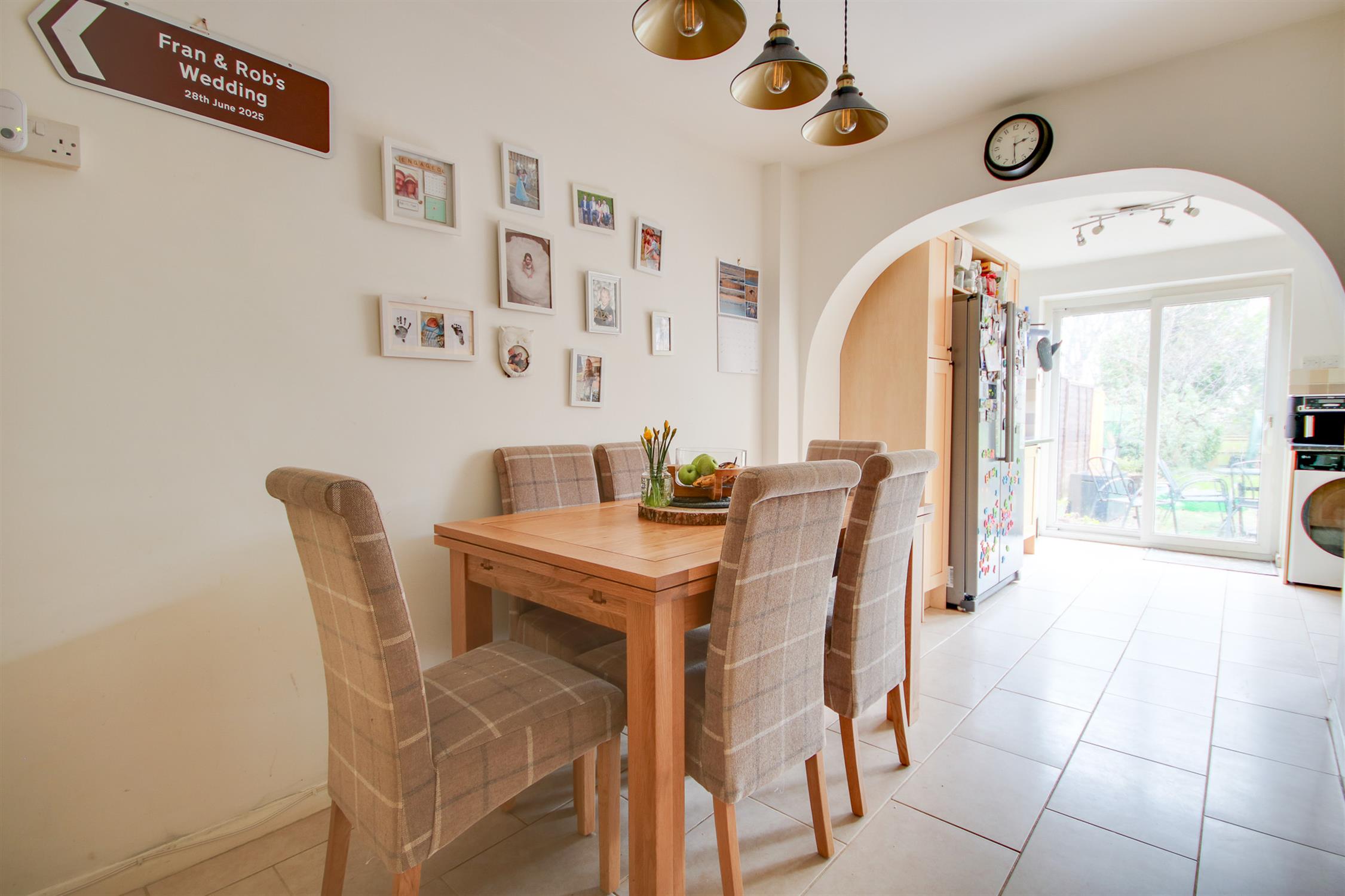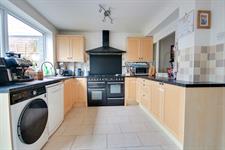 Smooth ceiling, double glazed window to rear, double glazed sliding doors leading in to rear garden, wall base and drawer units with work surface over, sink and drainer inset, space for appliances.