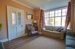 Smooth and coved ceiling, double glazed box bay window to front, vertical open column radiator, wood burner, original style fire place, laminate floor.