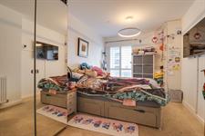 Smooth finish to ceiling, double glazed window to side elevation with fitted shutters, built in wardrobe with mirror fronted sliding doors, radiator, door to: