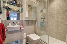 Smooth finish to ceiling with inset spotlights, panel enclosed bath with shower attachment over, wash hand basin and low level WC, mirror fronted storage unit, heated ladder towel rail, tiling to principle areas, laminate flooring.