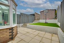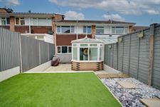 Fence enclosed rear garden with gated rear access. Patio seating area, artificial lawn. Outside tap.