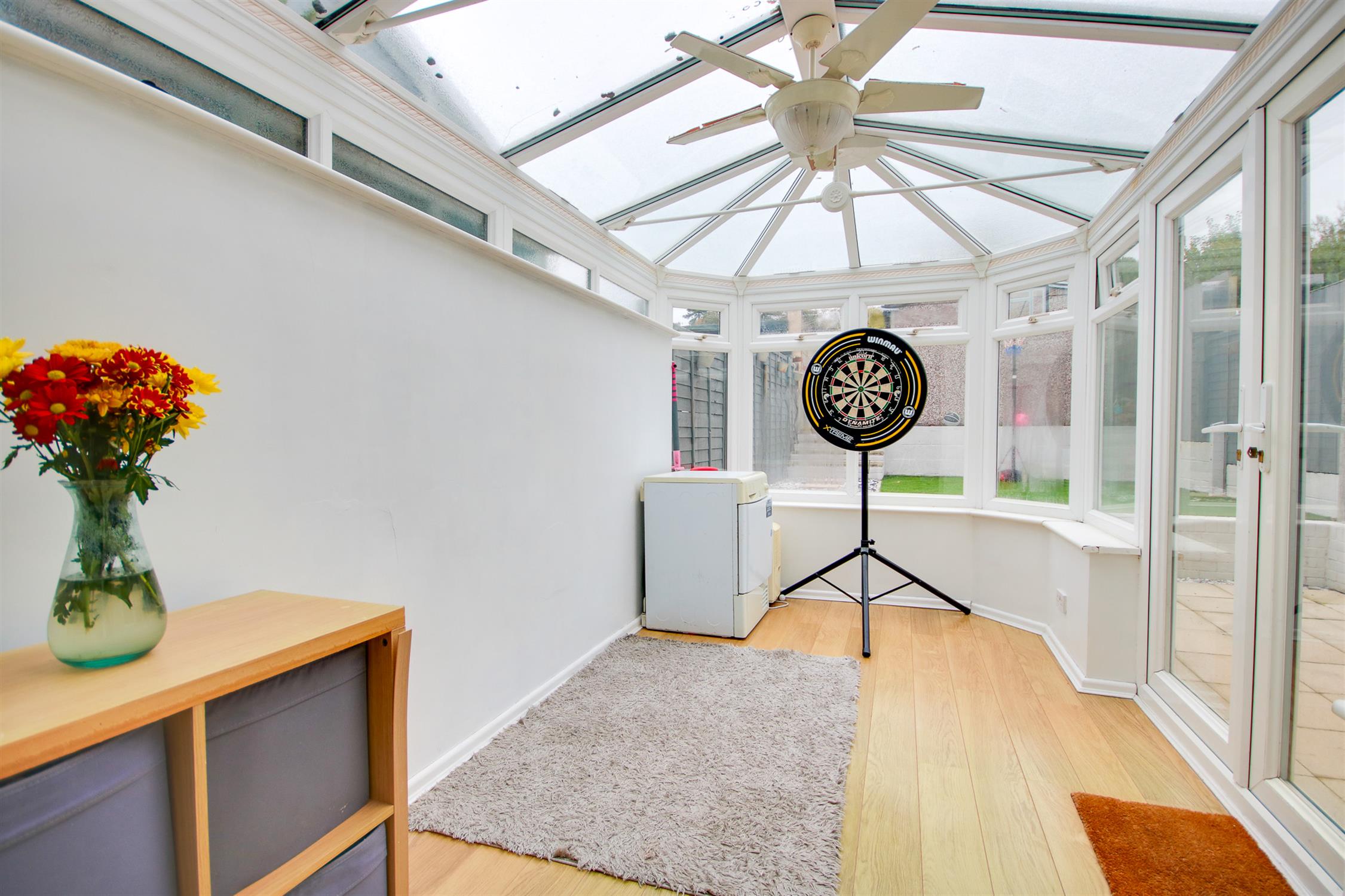 Glass roof, UPVC double glazed windows to rear and side, UPVC double glazed french door to side opening in to garden.