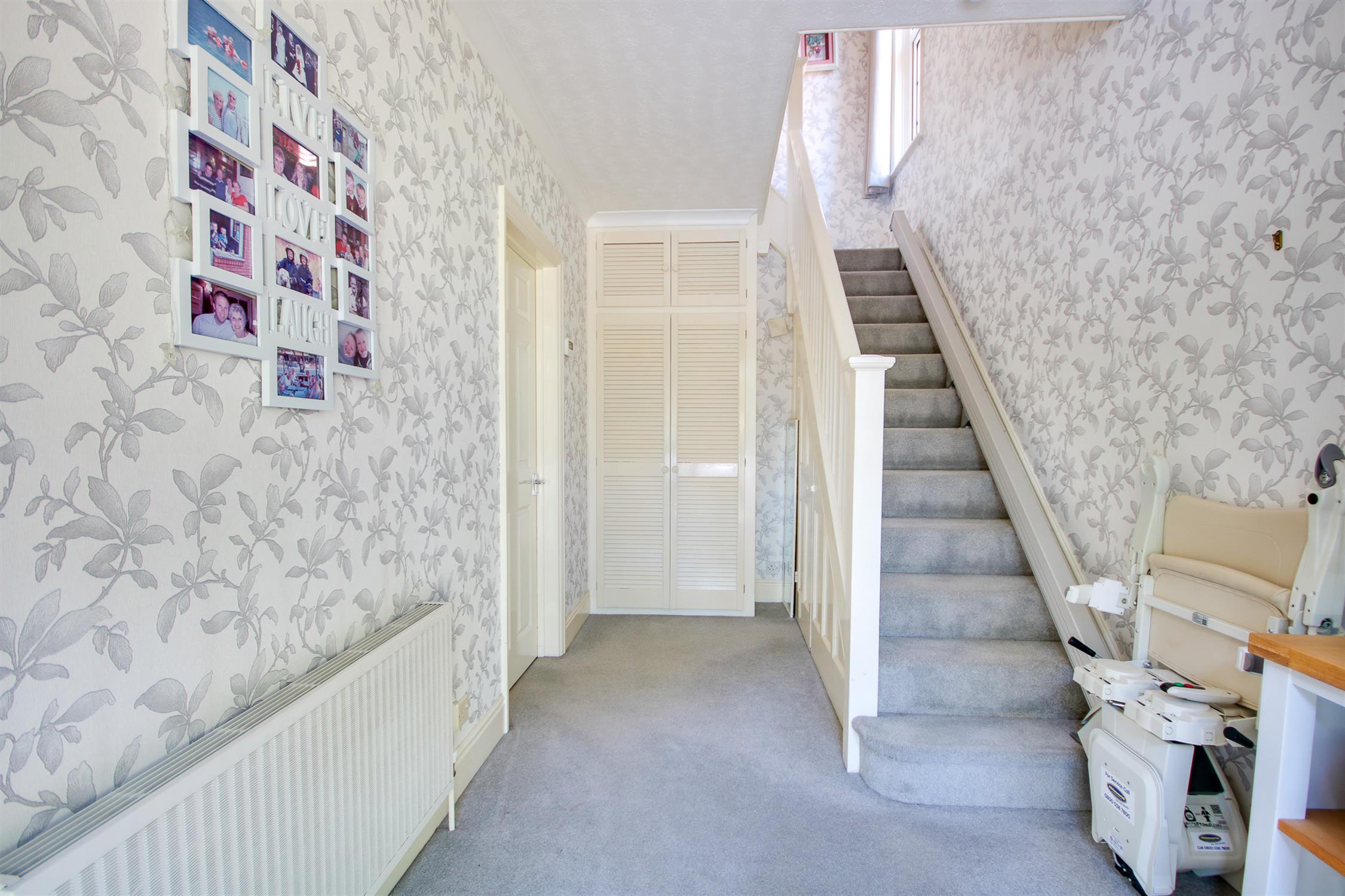 UPVC external door into hall, carpeted, sockets, one radiator, staircase to first floor, storage cupboard, textured ceiling, internal door leading to: