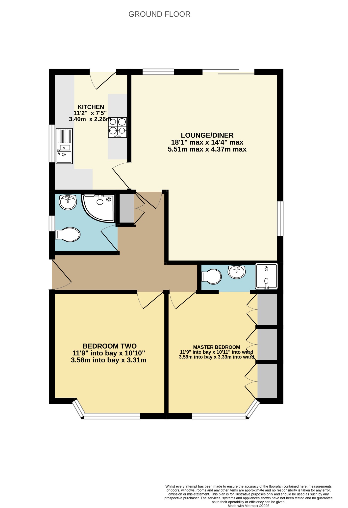 18' 1" (5.51m) max reducing to 11'2" (3.40m) x 14' 2" (4.32m) reducing to 10'10" (3.30m)::