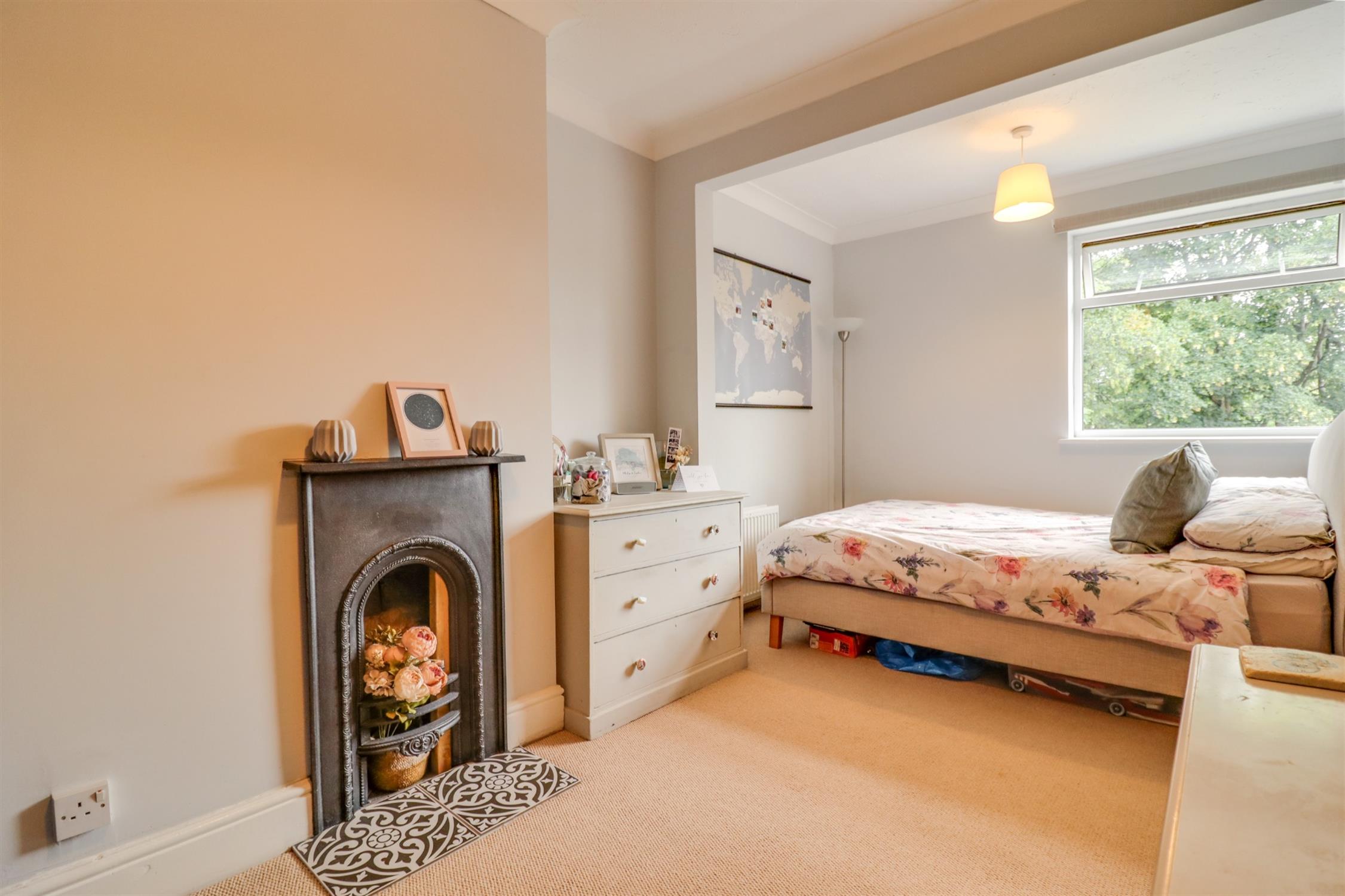 Textured finish to coved ceiling, double glazed window to rear elevation, feature cast iron fireplace, radiator.