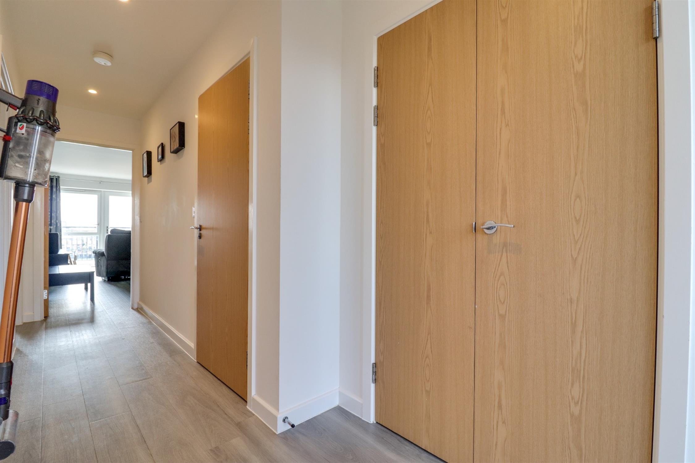 Lounge: Smooth finish to ceiling, double glazed window and door to rear elevation onto Juliet balcony with stunning water views, radiator, laminate flooring. Kitchen: Smooth finish to ceiling with inset spotlights, range of matching wall base and drawer units with roll top work surface over, stainless steel sink and drainer inset, built in oven with hob and extractor fan over, built in fridge freezer and dishwasher, laminate flooring.