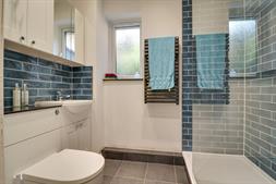 Shower RoomSmooth finish to ceiling with inset spotlights, double glazed window to side elevation, with electric walk-in shower cubicle, vanity wash hand basin and low level WC, tiling to principle areas, electric towel radiator, tiled flooring.