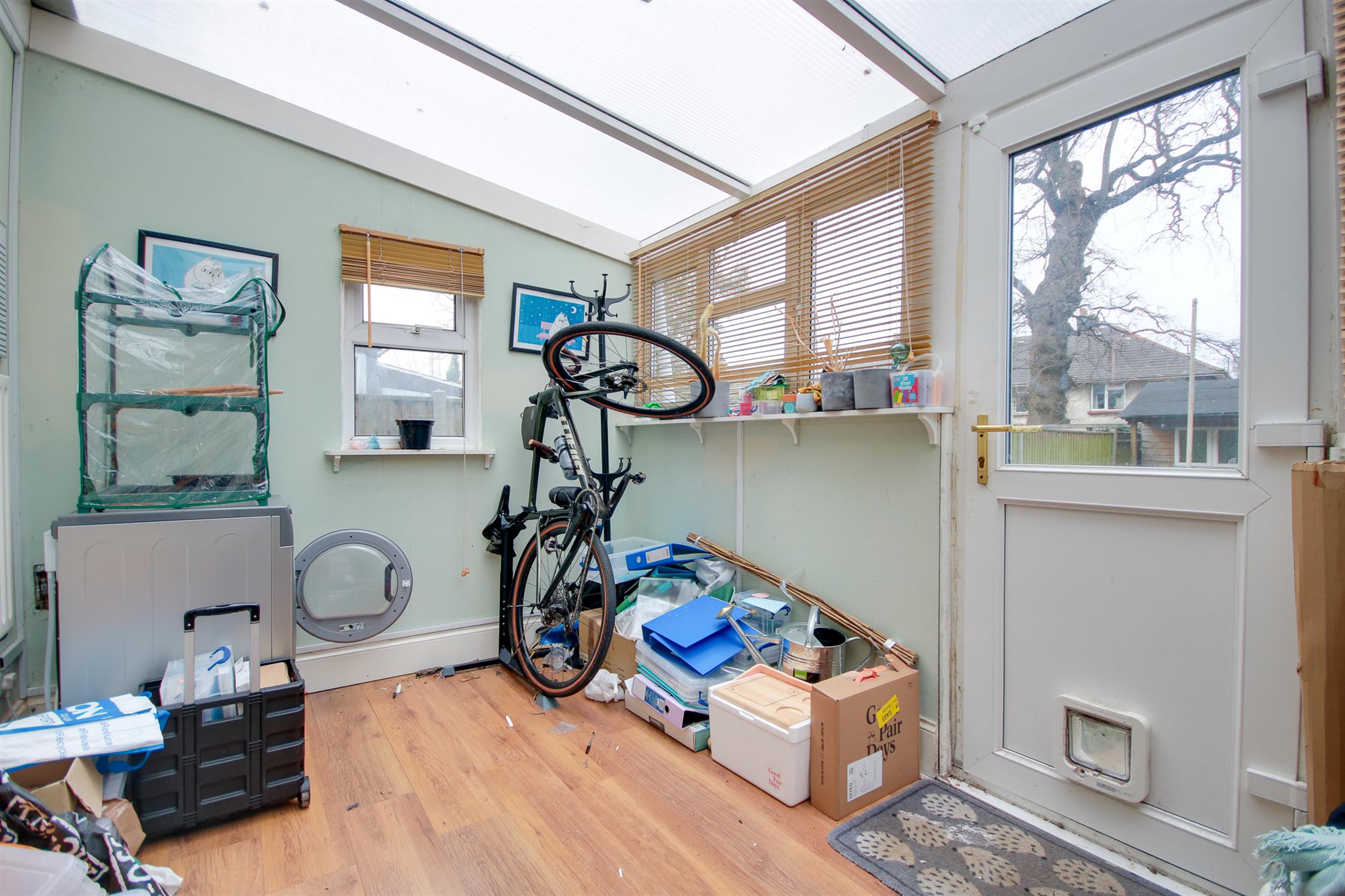 Polycarbonate roof, UPVC double glazed windows and UPVC double glazed door to rear opening onto garden, UPVC double glazed window to side.