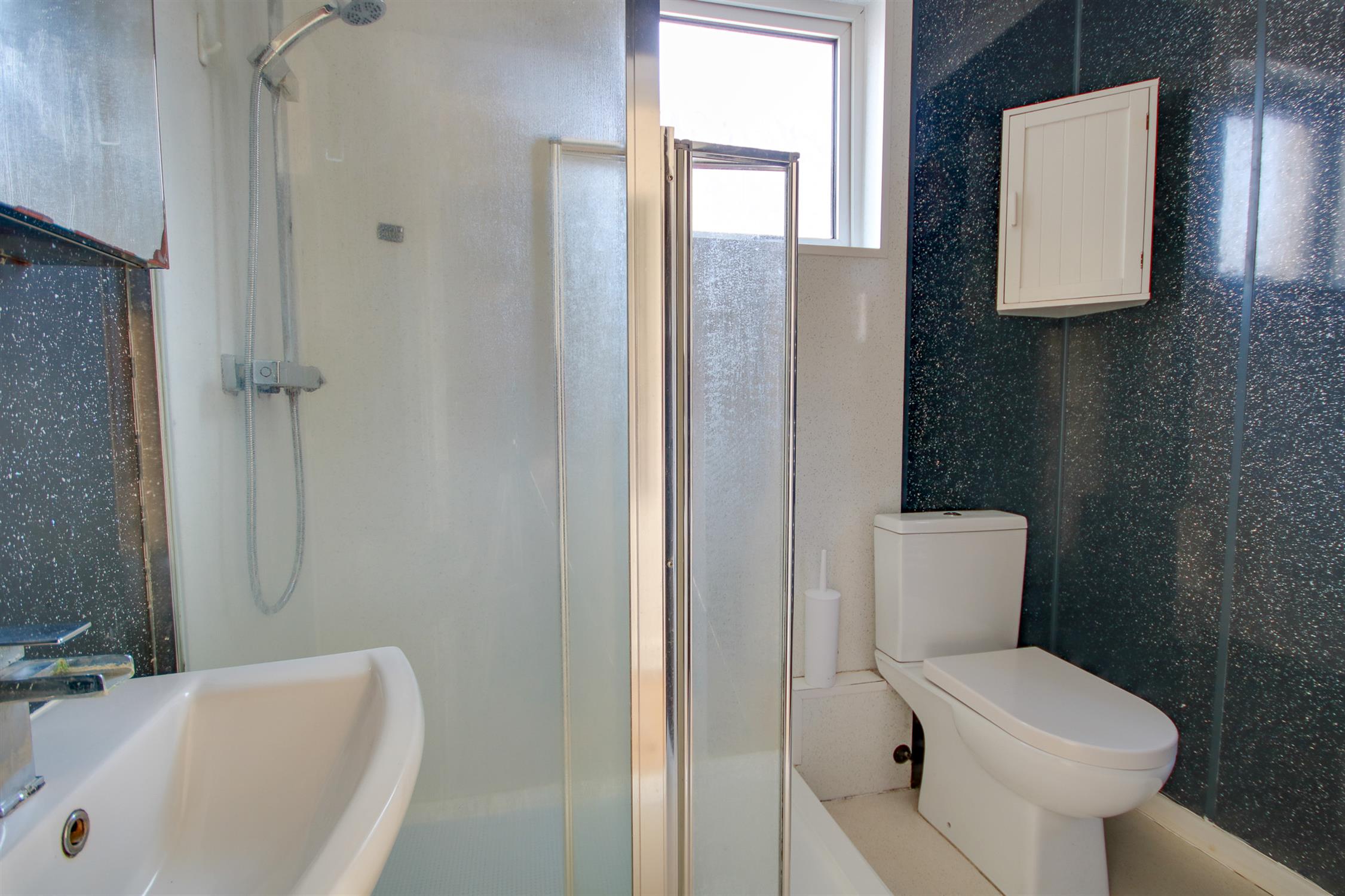Smooth ceiling, UPVC double glazed obscured window to side, three-piece suite comprising: cubicle with mains fed shower over, W/C, wash hand basin. tiling to principal areas.