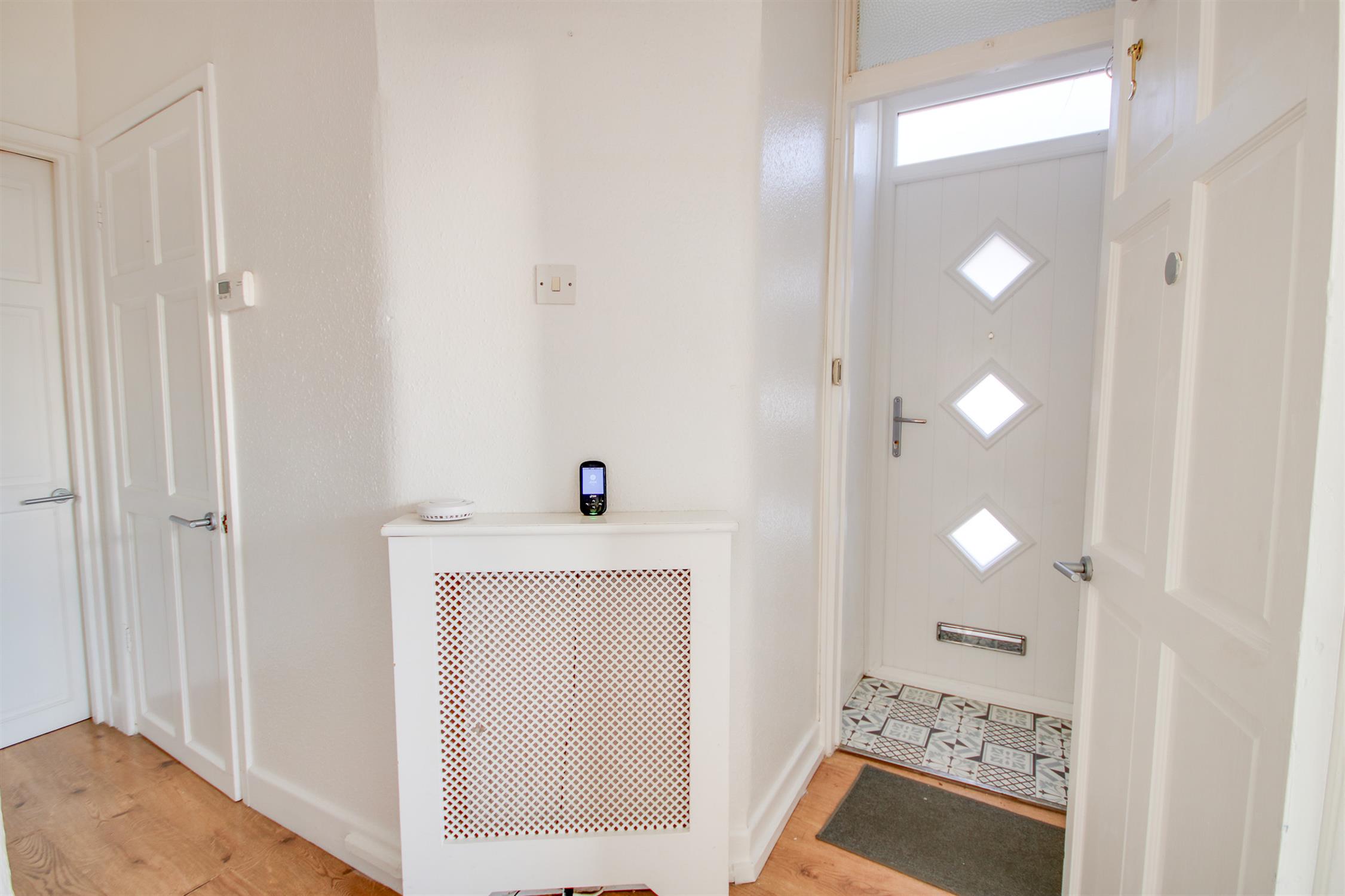 Textured and coved ceiling, storage cupboard, radiator, opening to: