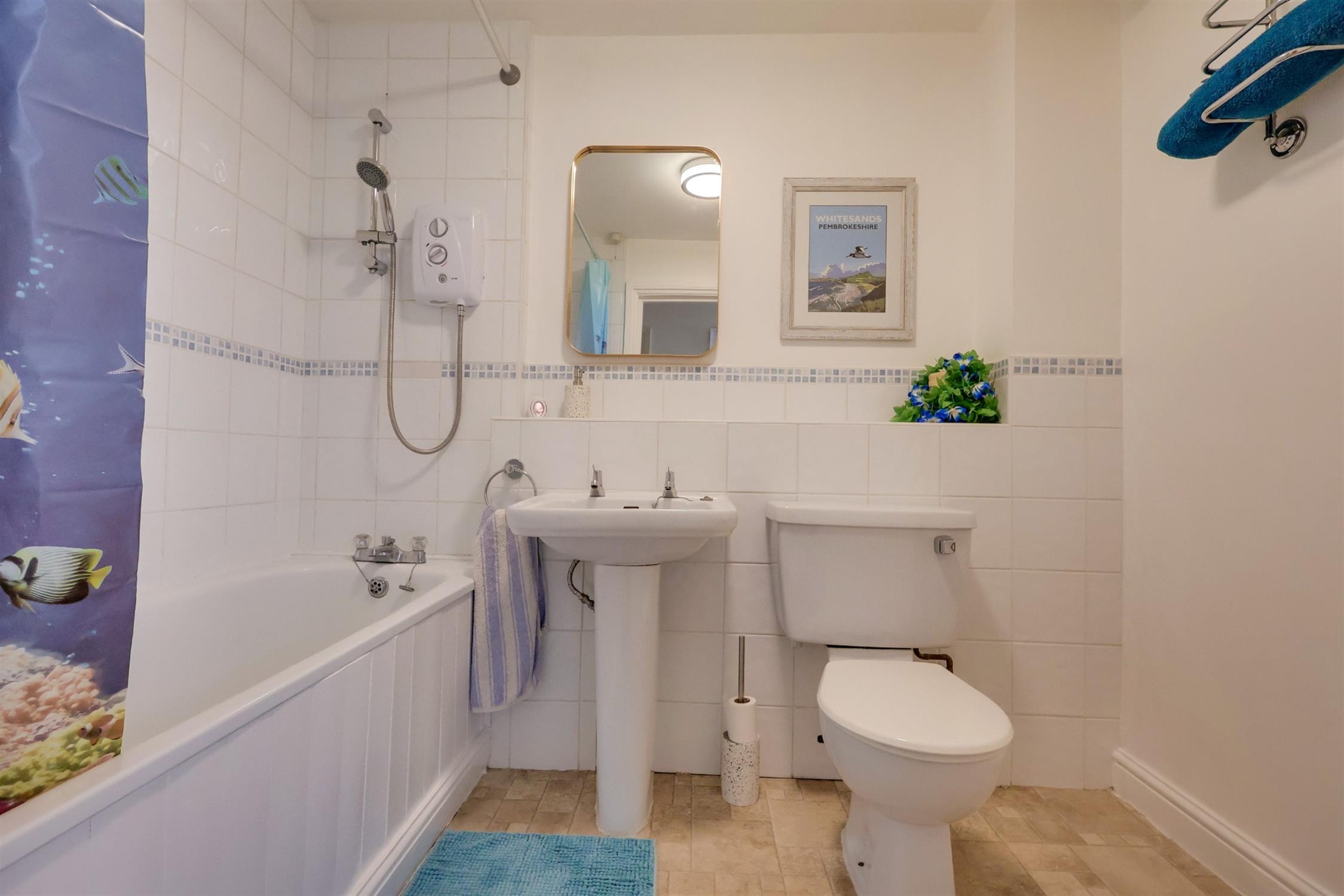 Smooth finish to ceiling, panel enclosed bath with electric shower over, wash hand basin, low level WC, tiling to principle areas.