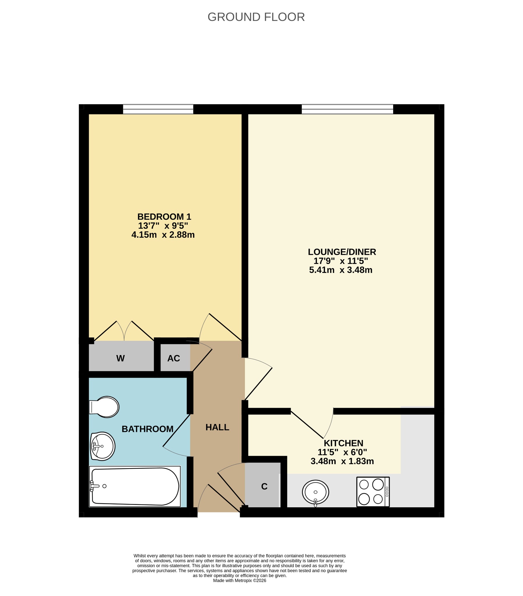 11' 5" (3.48m) x 17' 9" (5.41m):