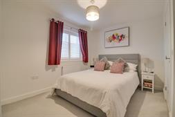 BathroomSmooth finish to ceiling with extractor fan and inset spotlights, double glazed window to front elevation, panel enclosed P-shaped bath with mains fed shower over, vanity wash hand basin and low level WC, heated ladder towel rail, tiling to applicable areas, tiled flooring.