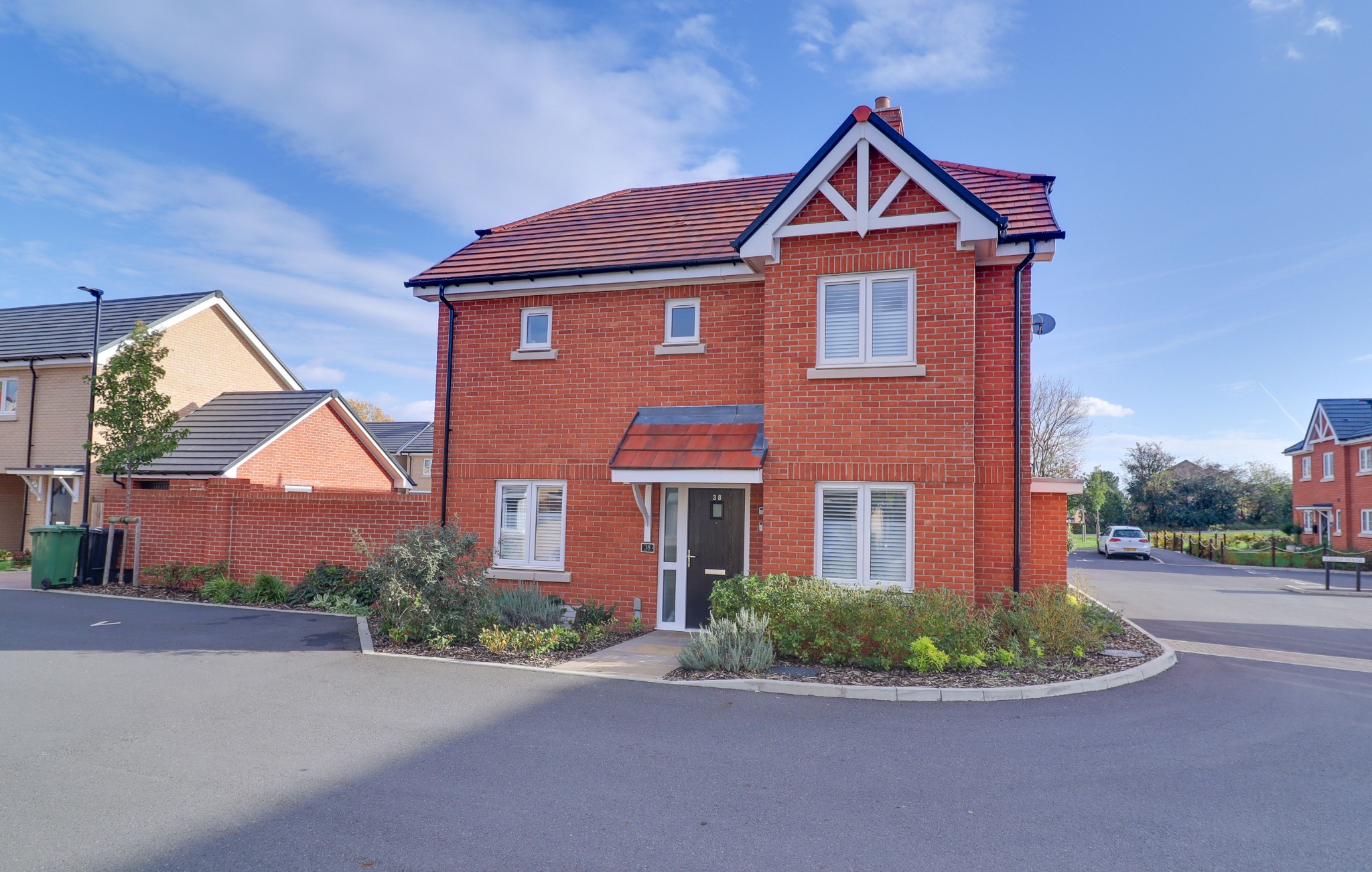 On the first floor, there is an impressive master bedroom suite which is complemented with a double built in wardrobe and a modern en suite shower room with a rainfall style shower, illuminated mirror and a heated towel rail. There are three further bedrooms, one of which benefits from a double built in wardrobe, another two benefit from dual aspect windows. There is a spacious hallway with a generous boiler cupboard and loft access to the loft. A modern family bathroom which has been designed with a 'P' shaped bath, rainfall style shower and a sleek vanity hand wash basin. Situated on a corner plot, the property benefits from a generous block paved driveway which provides ample off-road parking. An outbuilding with power and lighting provides additional entertaining space, and a small garage with an up-and-over door offers extra storage. To top it all off, there is a brick wall enclosed garden which offers a generous patio seating area and an area of artificial lawn, perfect for gatherings and al fresco dining. Side pedestrian access and direct access to the garage via a double-glazed door.
