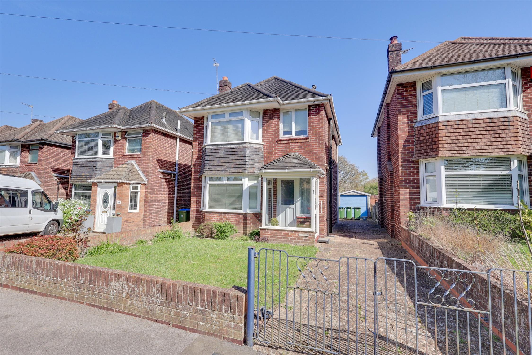 Welcome to Portsmouth Road! Tucked away from the main road along a peaceful, tree-lined slip road, this charming three-bedroom detached home offers a rare sense of privacy while still being conveniently located. Set back in a secluded position, the property opens into an inviting entrance porch and hallway with understairs storage, leading through to a bright and spacious dual-aspect lounge diner. A feature bay window at the front allows natural light to pour in, creating a warm and welcoming space ideal for both everyday living and entertaining. The fitted kitchen is well arranged with classic shaker-style units, tiled splashbacks and a useful larder cupboard, offering both charm and practicality. To the rear, a conservatory provides additional living space with pleasant views over the garden, along with a convenient ground floor cloakroom. Upstairs, there are three well-proportioned bedrooms, including two comfortable doubles, all benefiting from built-in storage. The landing leads to a modern shower room complete with a stylish vanity unit and full-height tiling for a clean, contemporary finish.