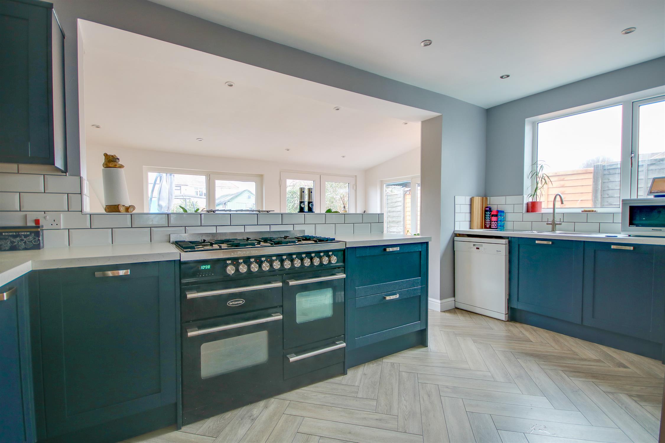 Smooth ceiling, double glazed windows to side, double glazed French doors to rear, a range of wall, base and drawer units with work surface over, space for fridge/freezer, cooker, dishwasher, stainless steel bowl and a half sink and drainer inset, two vertical radiators.