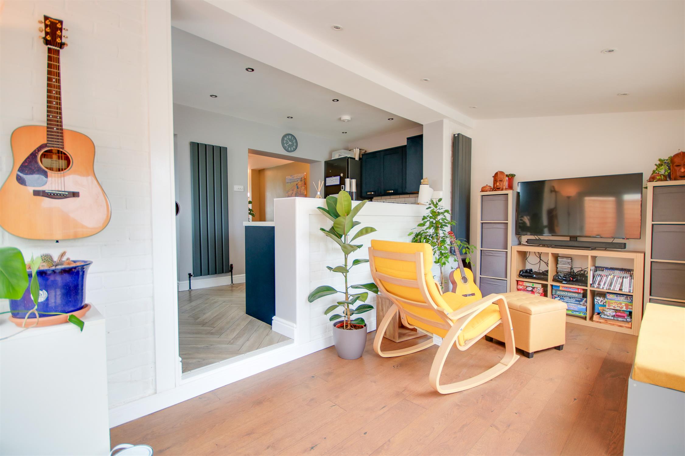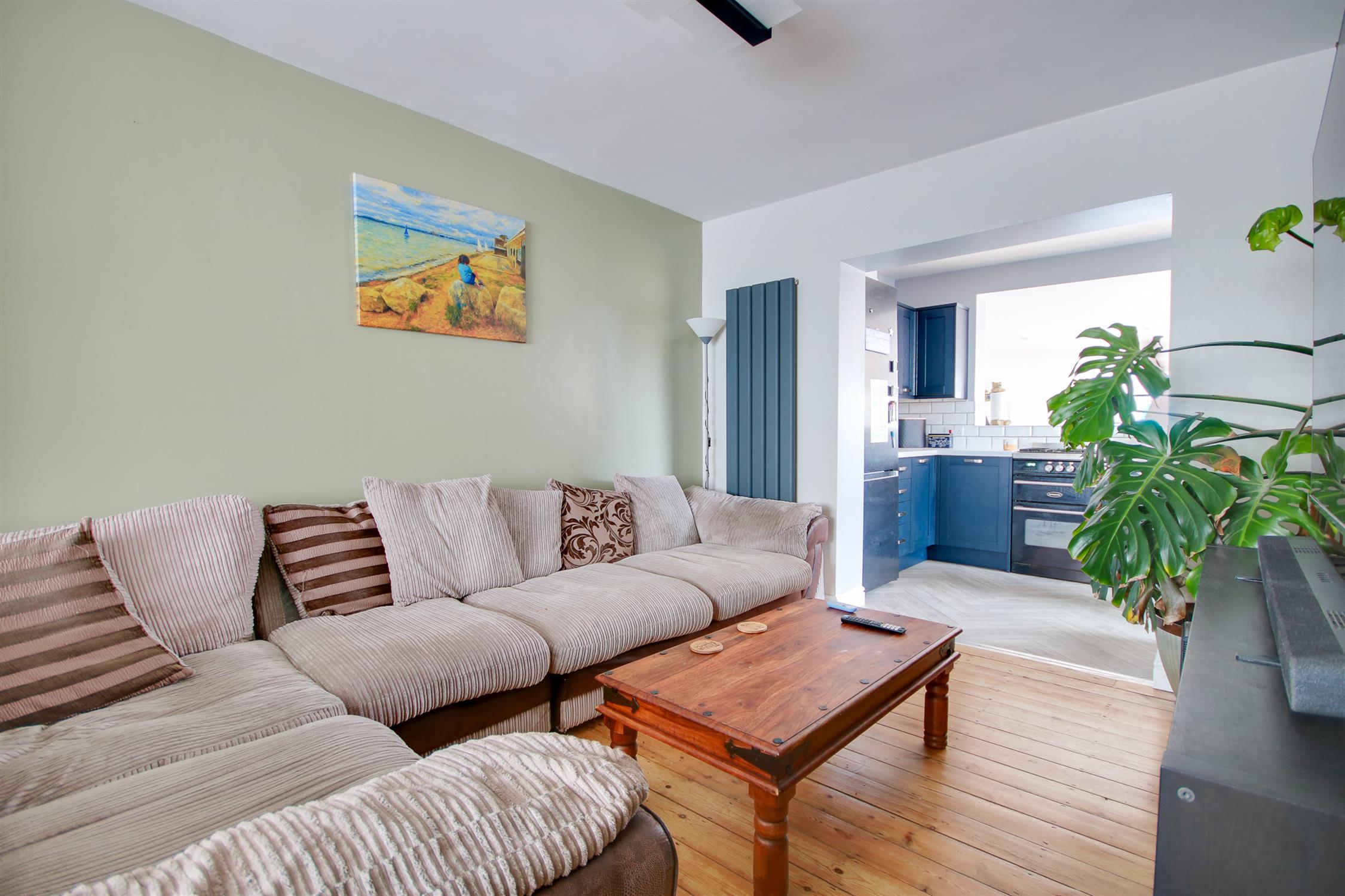 Smooth ceiling, double glazed bay window to front, vertical radiator, opening to: