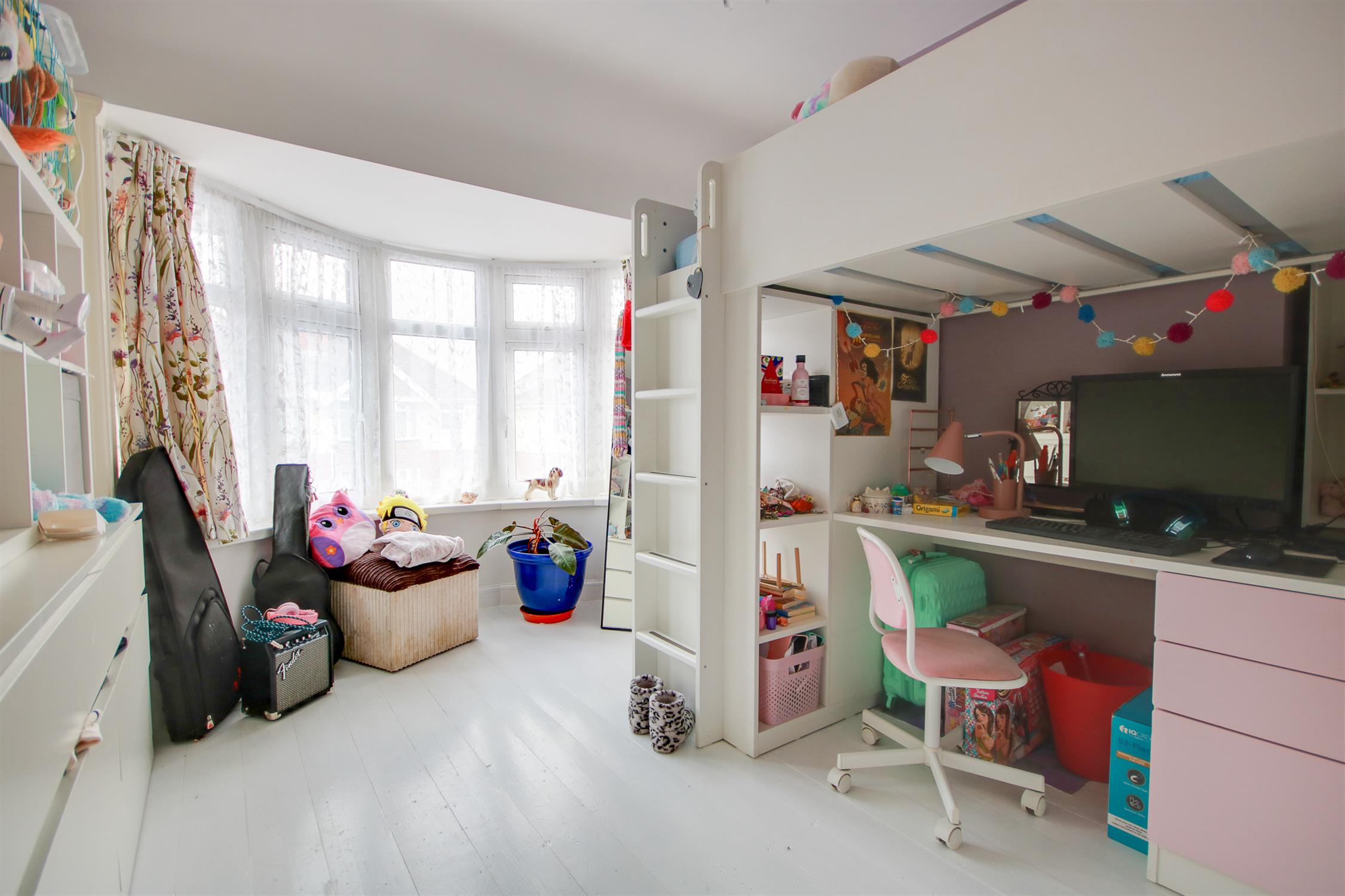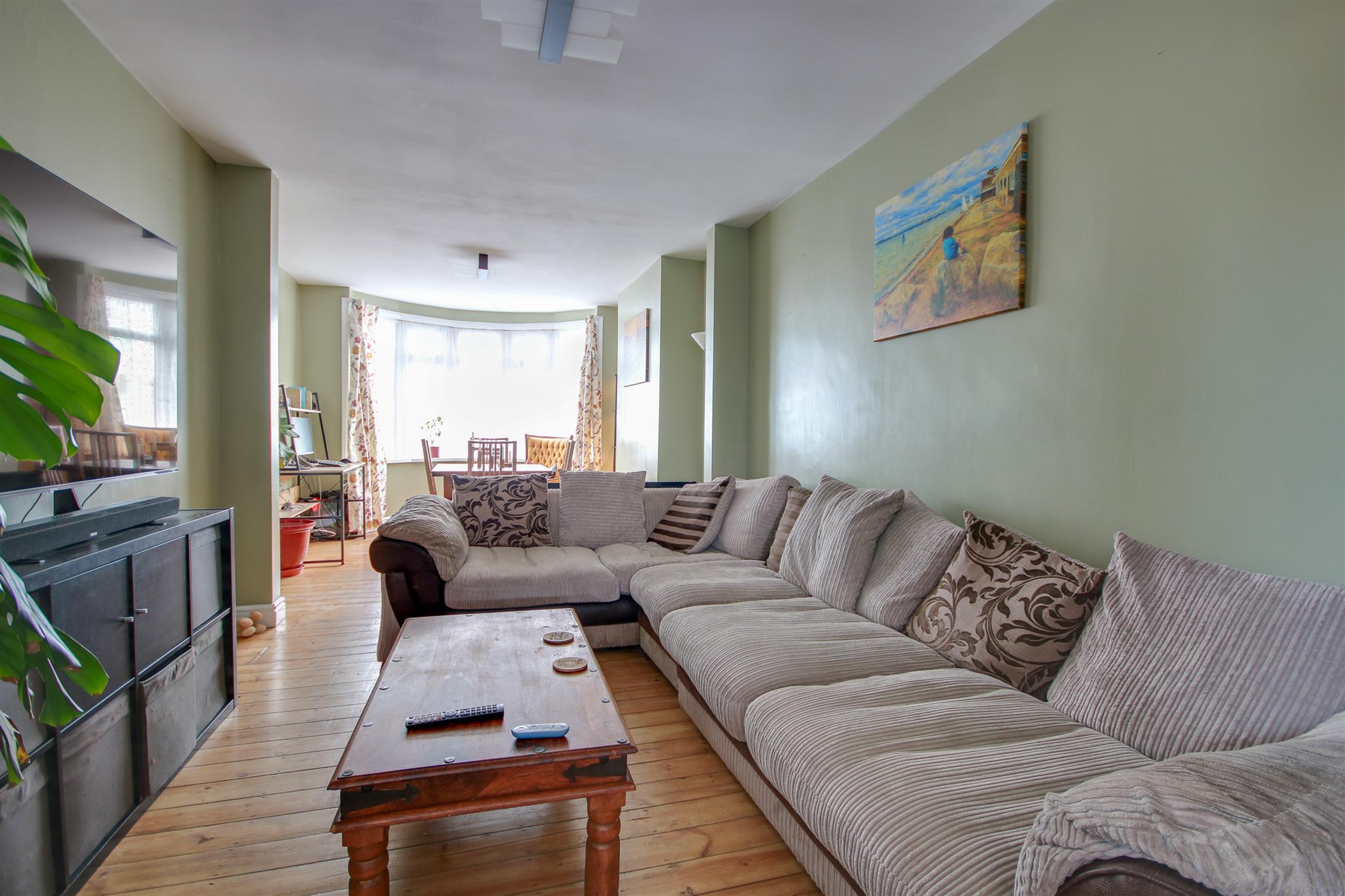 Smooth ceiling, double glazed bay window to front, radiator.