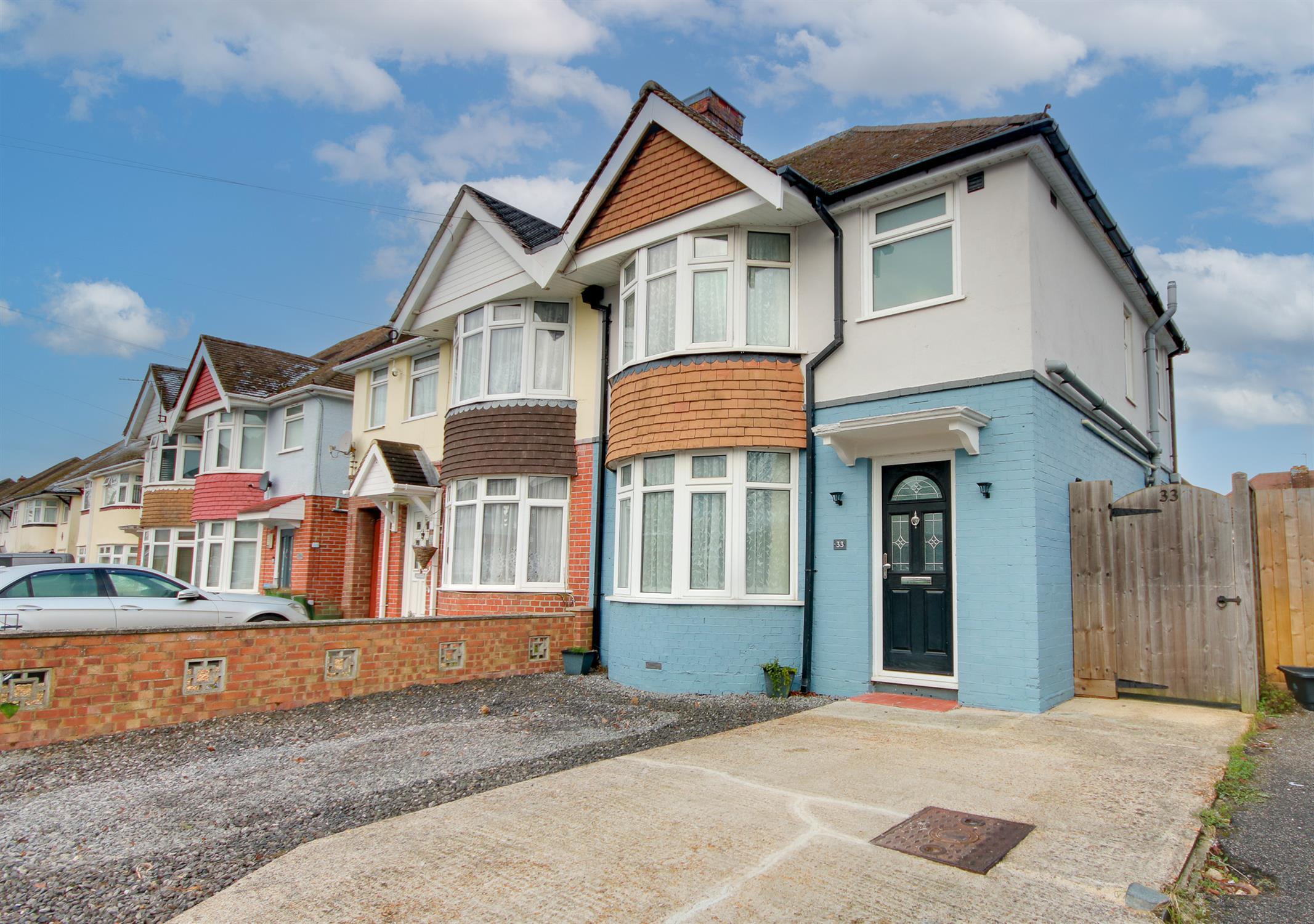 Welcome to Mowbray Road! Absolutely stunning throughout, this three-bedroom semi-detached gem of a home is situated within one of Sholing's most sought-after locations and is one not to be missed! Step inside into the main entrance hallway, recently redecorated and boasting exposed solid wood flooring leading on into the TWENTY-FOUR-FOOT lounge diner. Hosting a light and bright bay window and opening into the kitchen, which showcases a "Shaker Style" navy kitchen with space for appliances, even a range cook...
