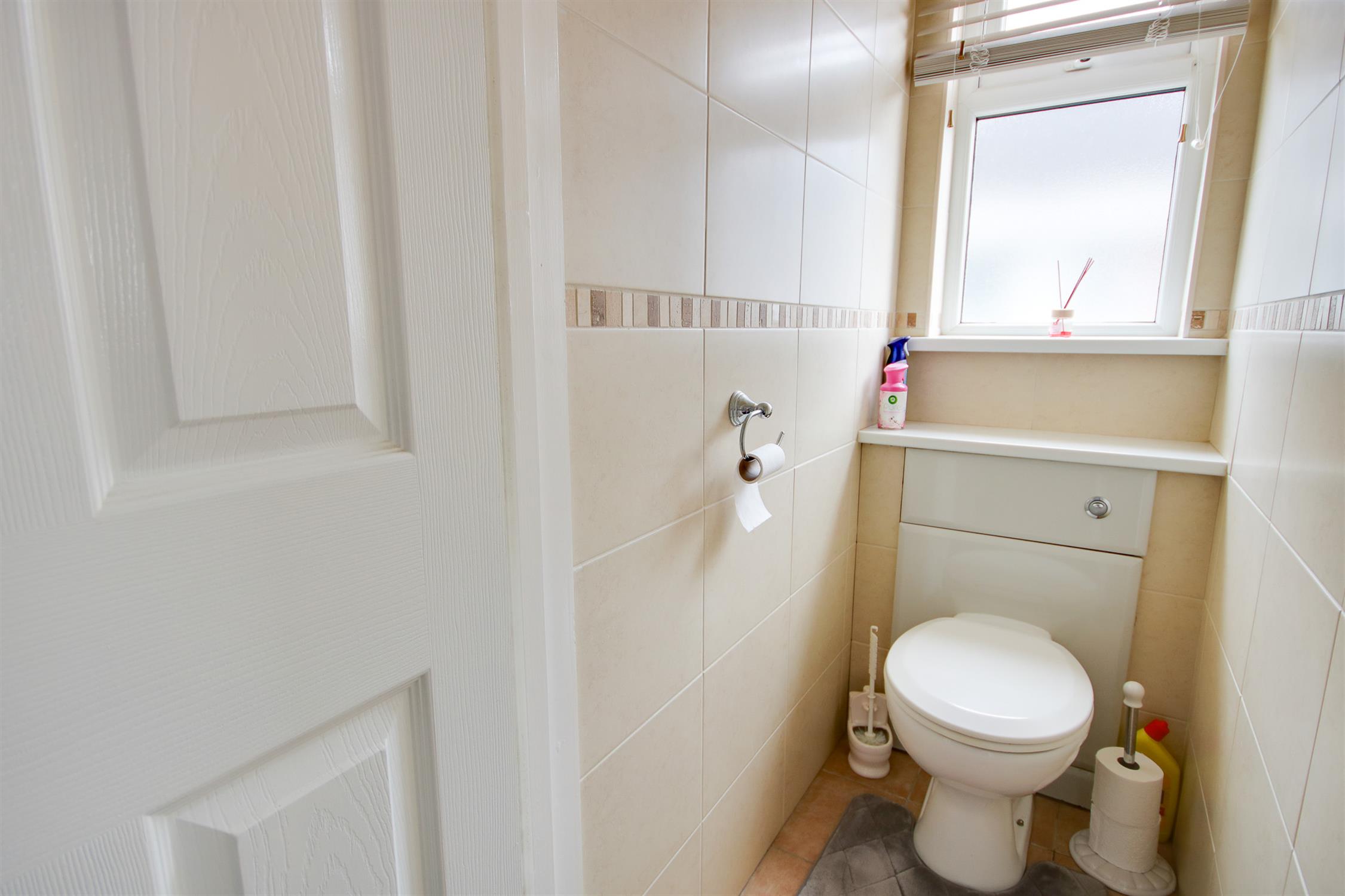 Coved and textured ceiling, UPVC double glazed obscured window to side, fully tiled walls and floor.