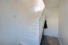 Textured ceiling, stairs rising to first floor, door to: