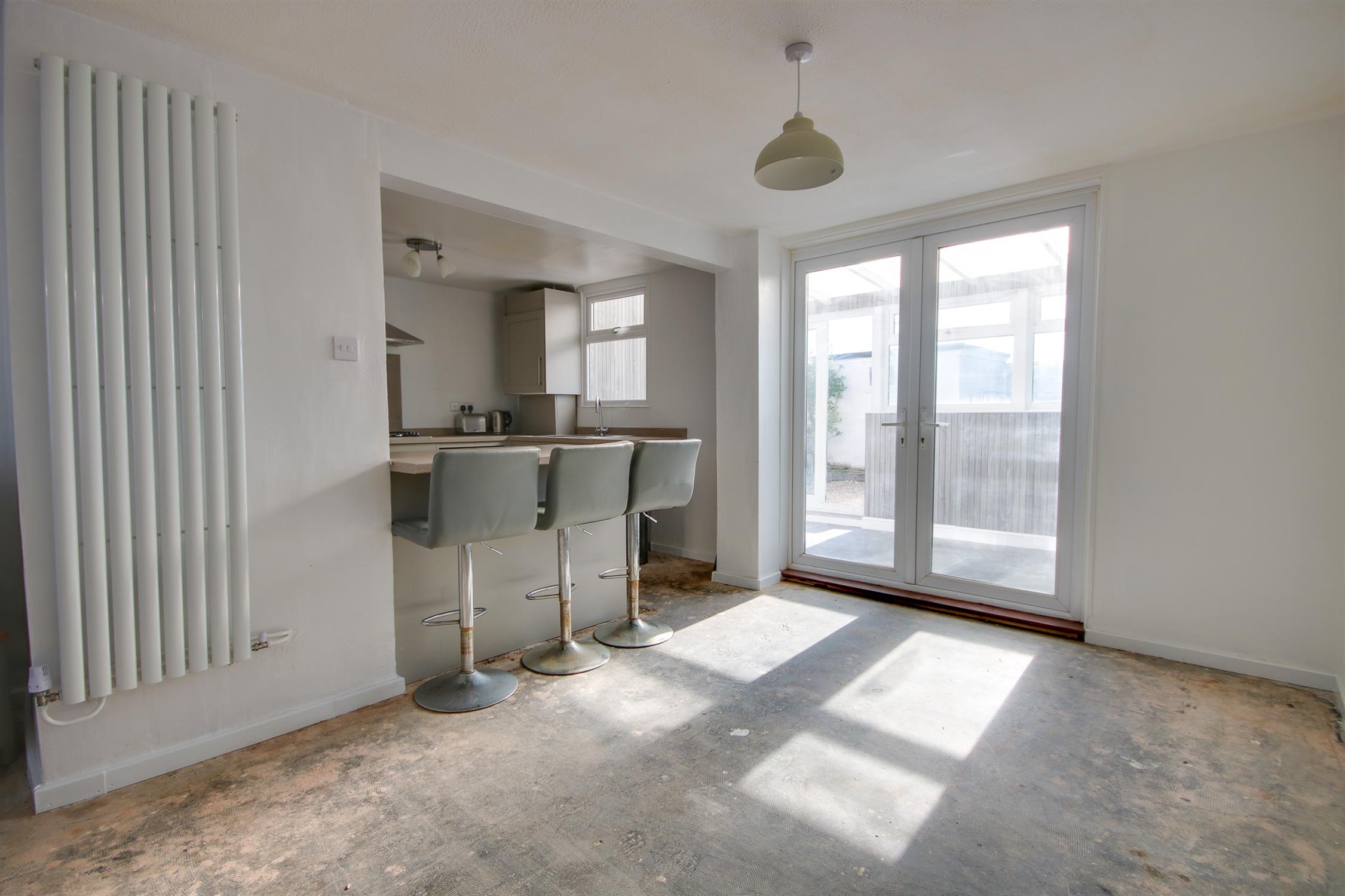 Polycarbonate roof, UPVC double glazed window to rear and French doors to rear, space and plumbing for washing machine and tumble dryer.