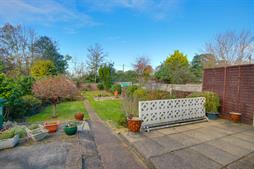 Fence enclosed rear garden, patio seating area, mainly laid to lawn, storage shed, greenhouse, outside tap, shared side access.