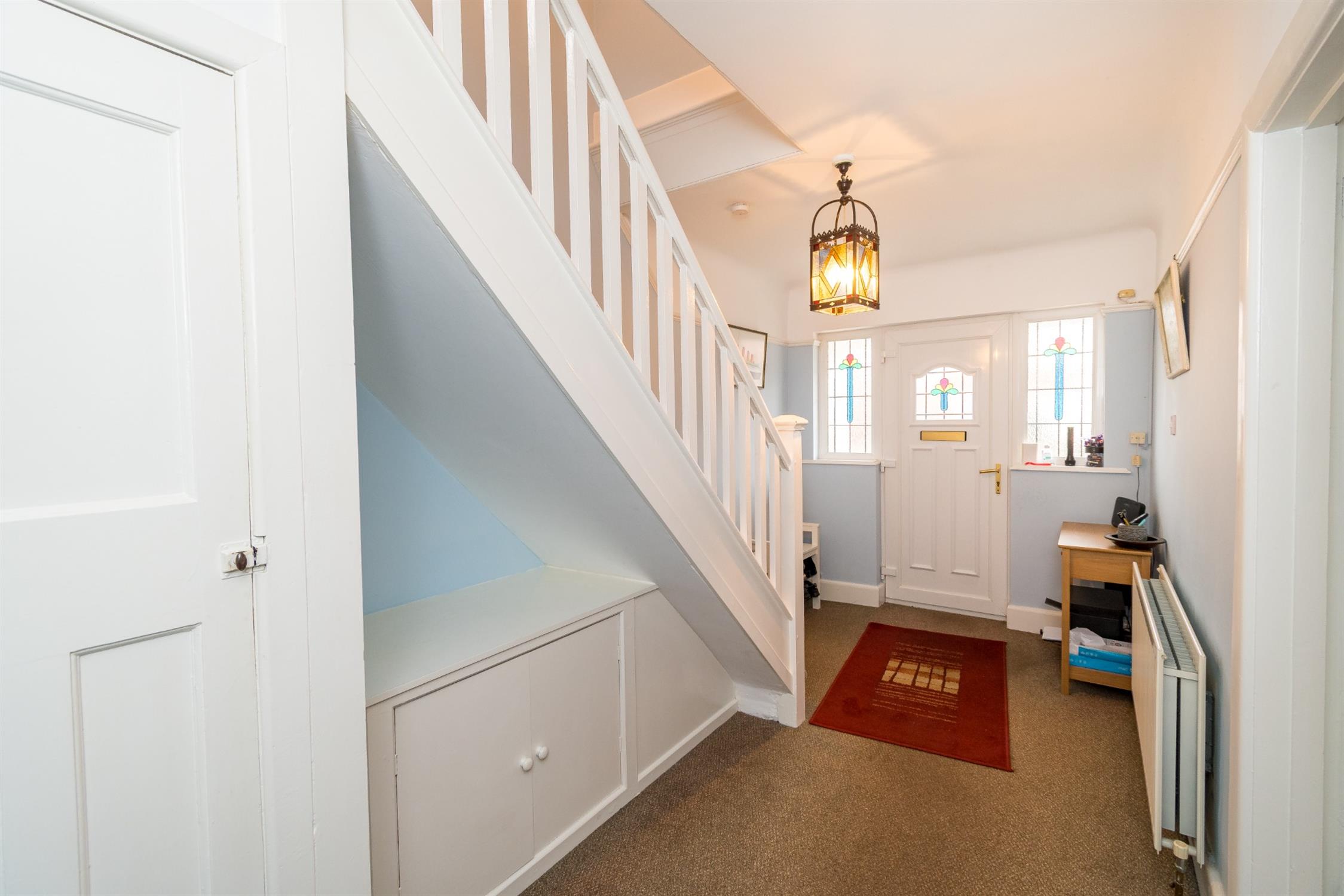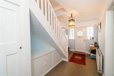 Double radiator, picture rail, understairs cupboard space, doors to: