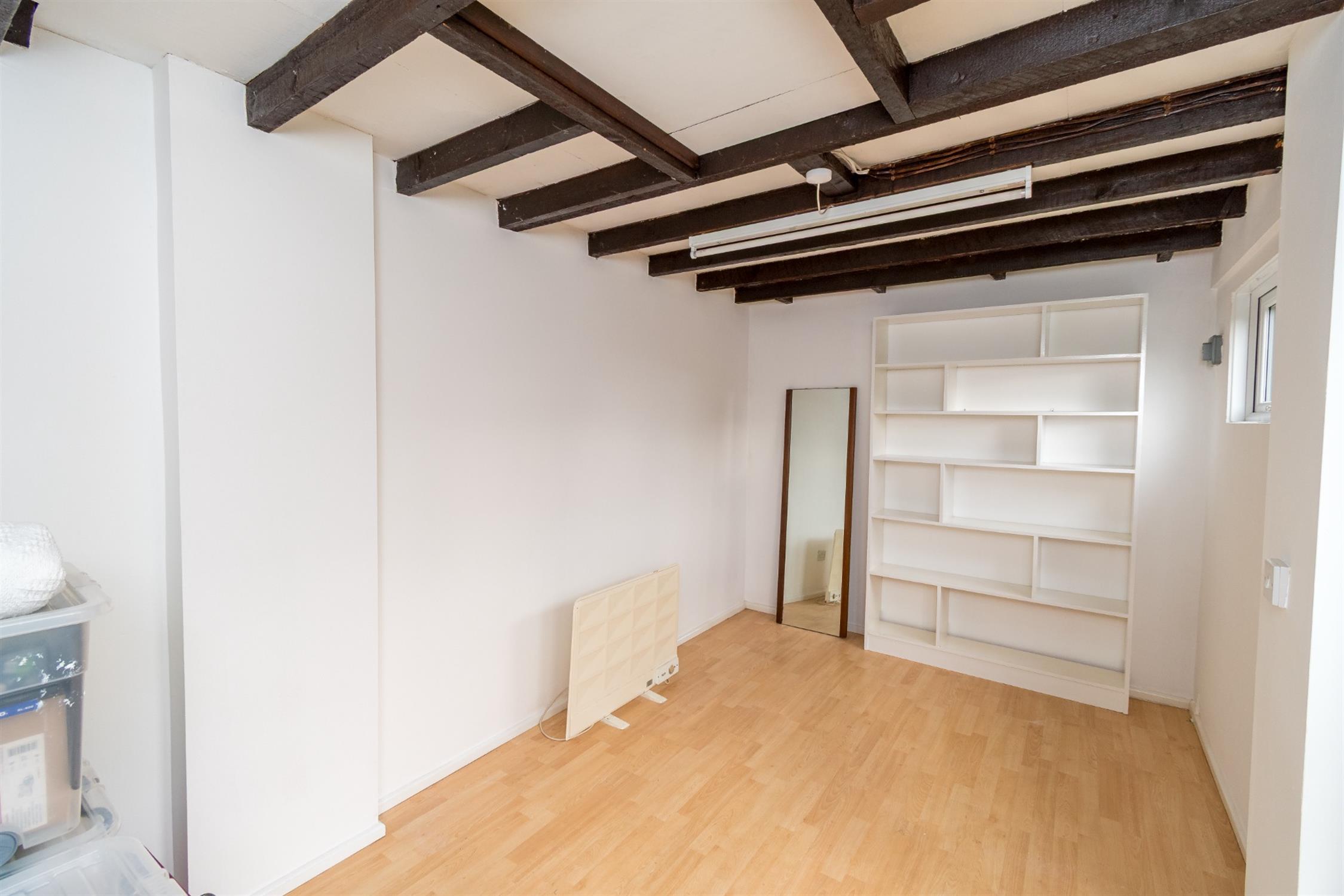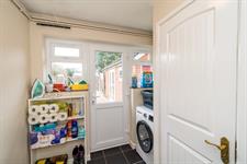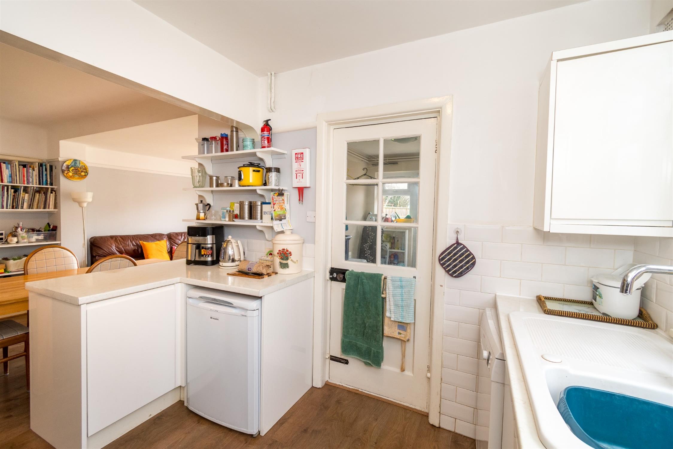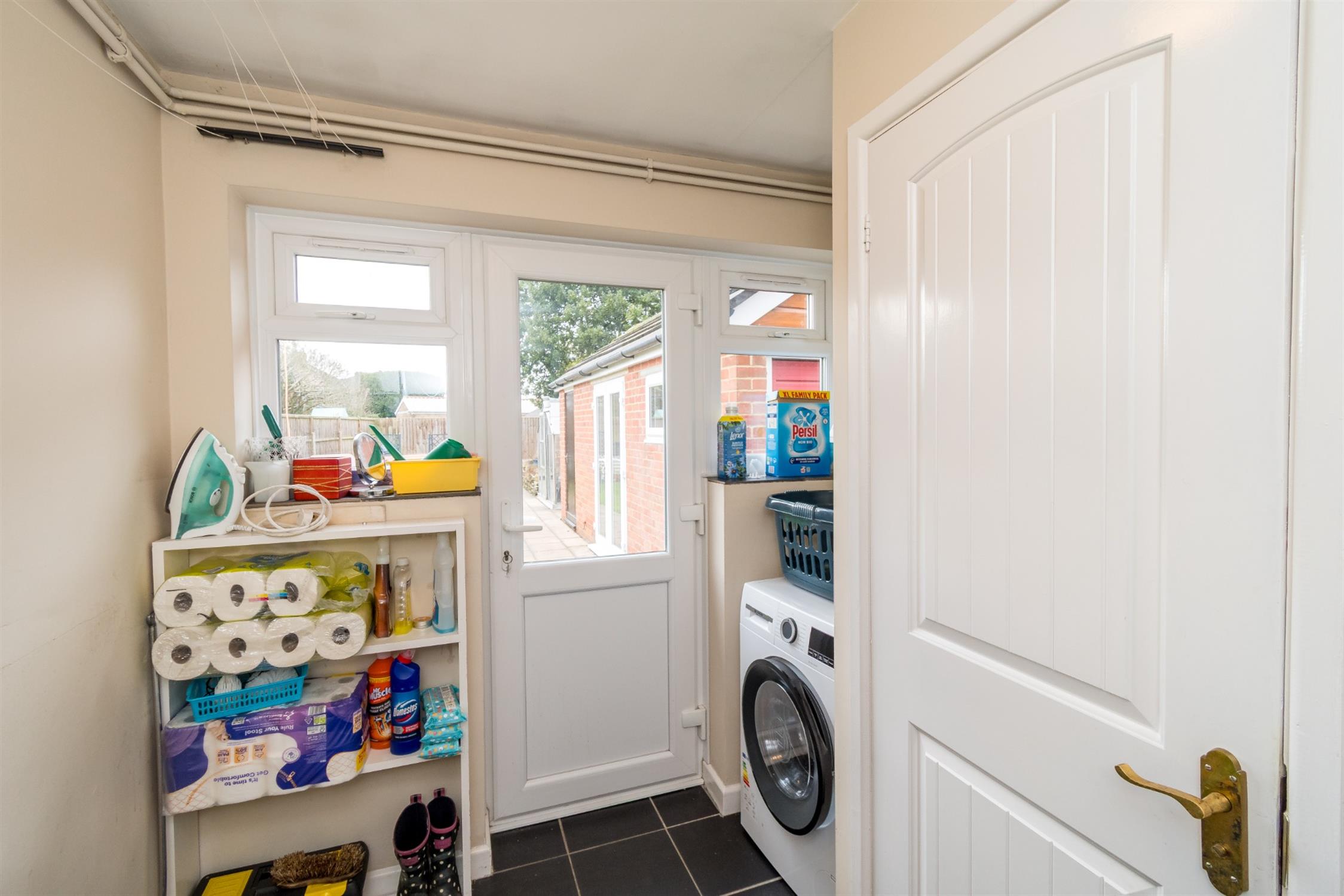 Plumbing for washing machine, space for freezer, wall mounted Worcester boiler, radiator, double glazed door & window to rear elevation, door to: